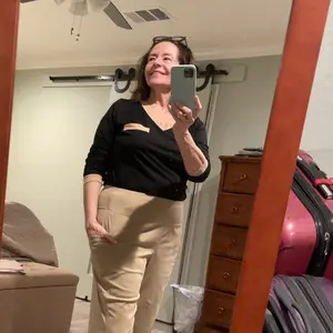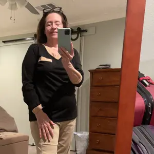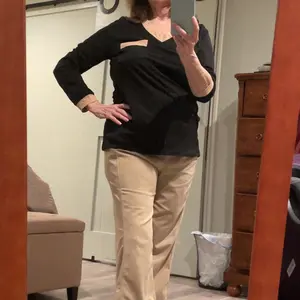I’m surprised at how much I like this top. The fabric is very soft but not clingy. It looks great with khaki pants. I’m 5’3” and weigh 137 lbs. I generally wear a large and this is a large so it is true to size but I am worried about when I wash it.