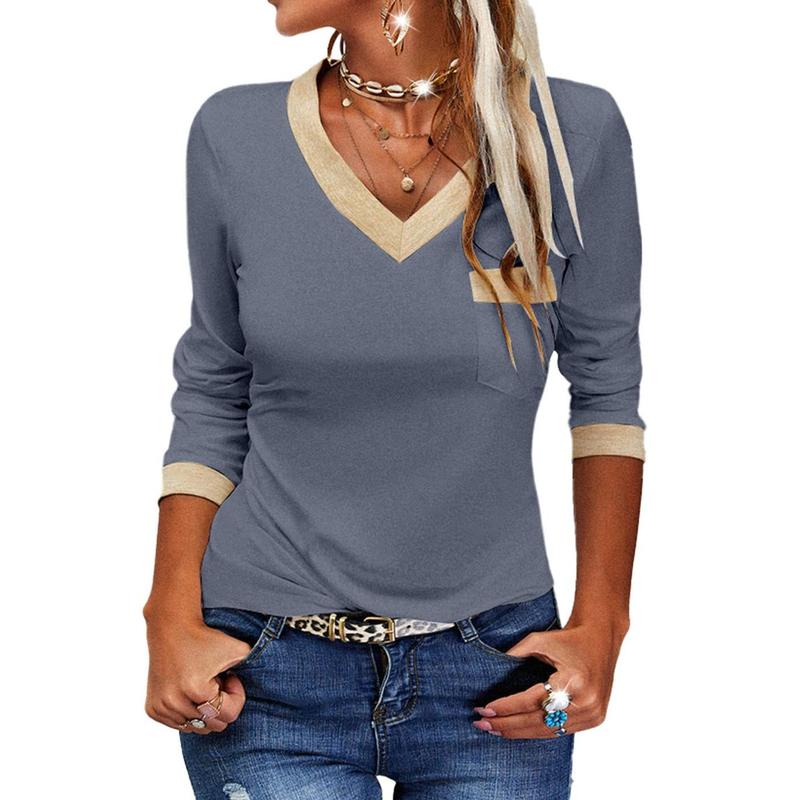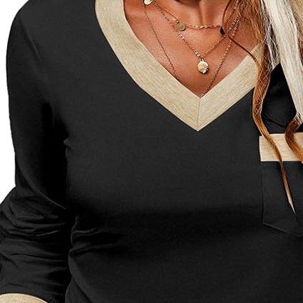Womens Long Sleeve T Shirts Casual V Neck Color Block Top