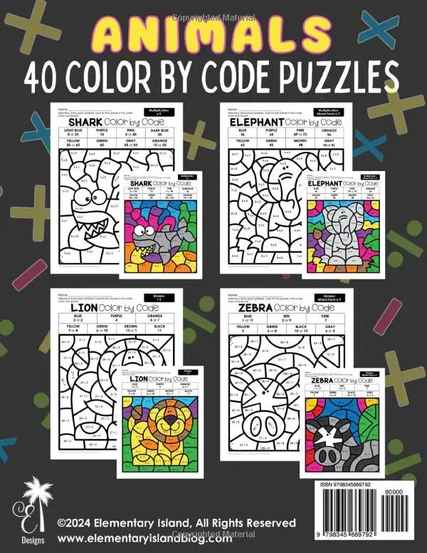 Make practicing multiplication and division a fun adventure for your child! Imagine their pride as they solve each equation and bring a variety of animal images to life through this color-by-code multiplication and division workbook!