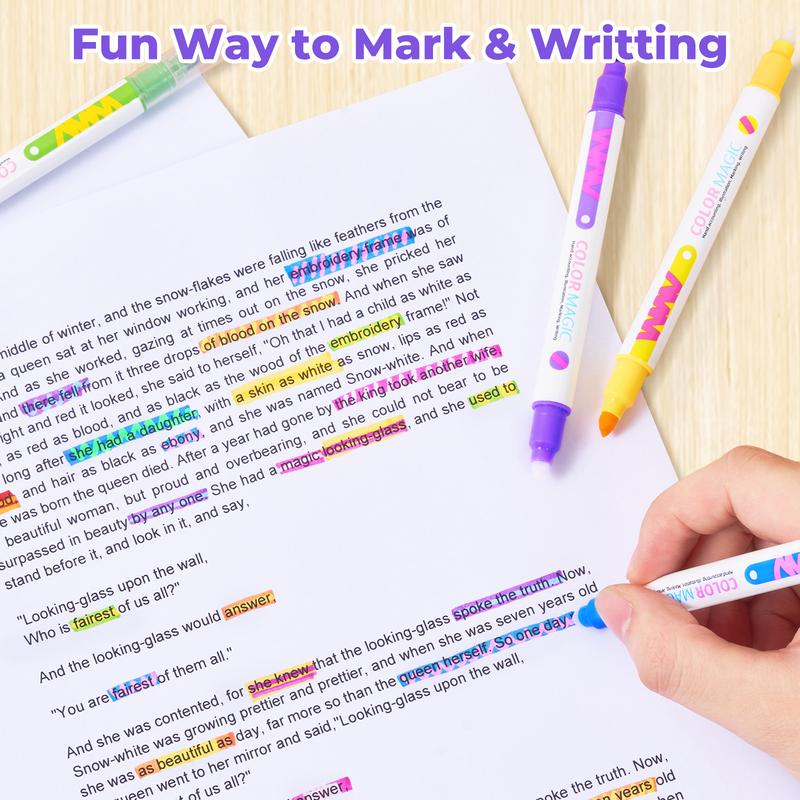 Never guess the color change again! Each marker features a clear, color-coded barrel that shows you the starting color and the magical end color (e.g., Red → Orange). Just draw with the colored chisel tip and watch the sparkle ink transform instantly with the white cone tip, creating a mesmerizing and predictable magical art experience.