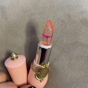 The packaging is so cute. The lipstick is scented like strawberries. The color is very pretty. I really love it.