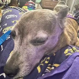 Um yes! Dark purple, very dark purple. Must wear gloves, maybe 2 pairs as it does stain your hands. Thought it was 3-4 washes conditioner color but permanent so I couldn’t do it. I did try it on my fog but only had it on 3 minutes. I’m sure I’d have the boldest most pretty color purple hair if I could!