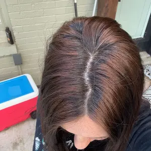 I got the shade Bella Brown, which is supposed to be a deep rich chocolate brown. I really wanted this product to work for me. I even used the ENTIRE bottle! It made my hair shiny and soft but only deposited color in patches on my head 😫