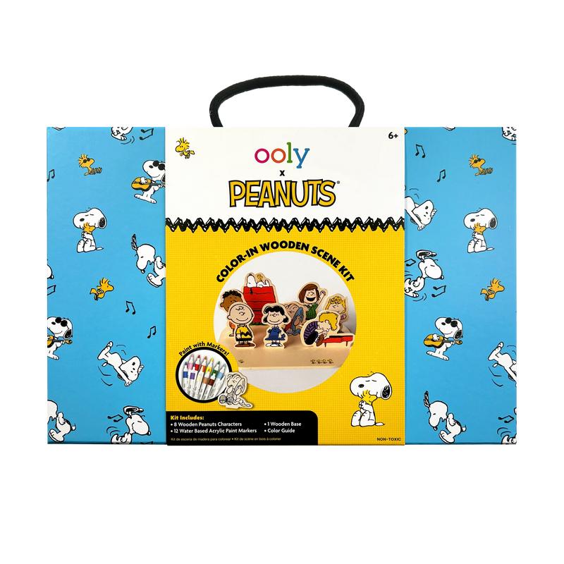 Bring the charm of Snoopy, Charlie Brown, and the Peanuts gang to life with the OOLY x Peanuts Color-In wooden scene kit! This DIY craft kit includes wooden Peanuts characters, each featuring black line art ready to be colored and assembled into a vibrant, fun-filled display. Perfect for creative minds, the kit comes with 12 acrylic paint markers to customize your masterpiece. A printed instruction sheet is included to guide young creators step-by-step through the process, making it easy for kids to craft their own personalized scene.