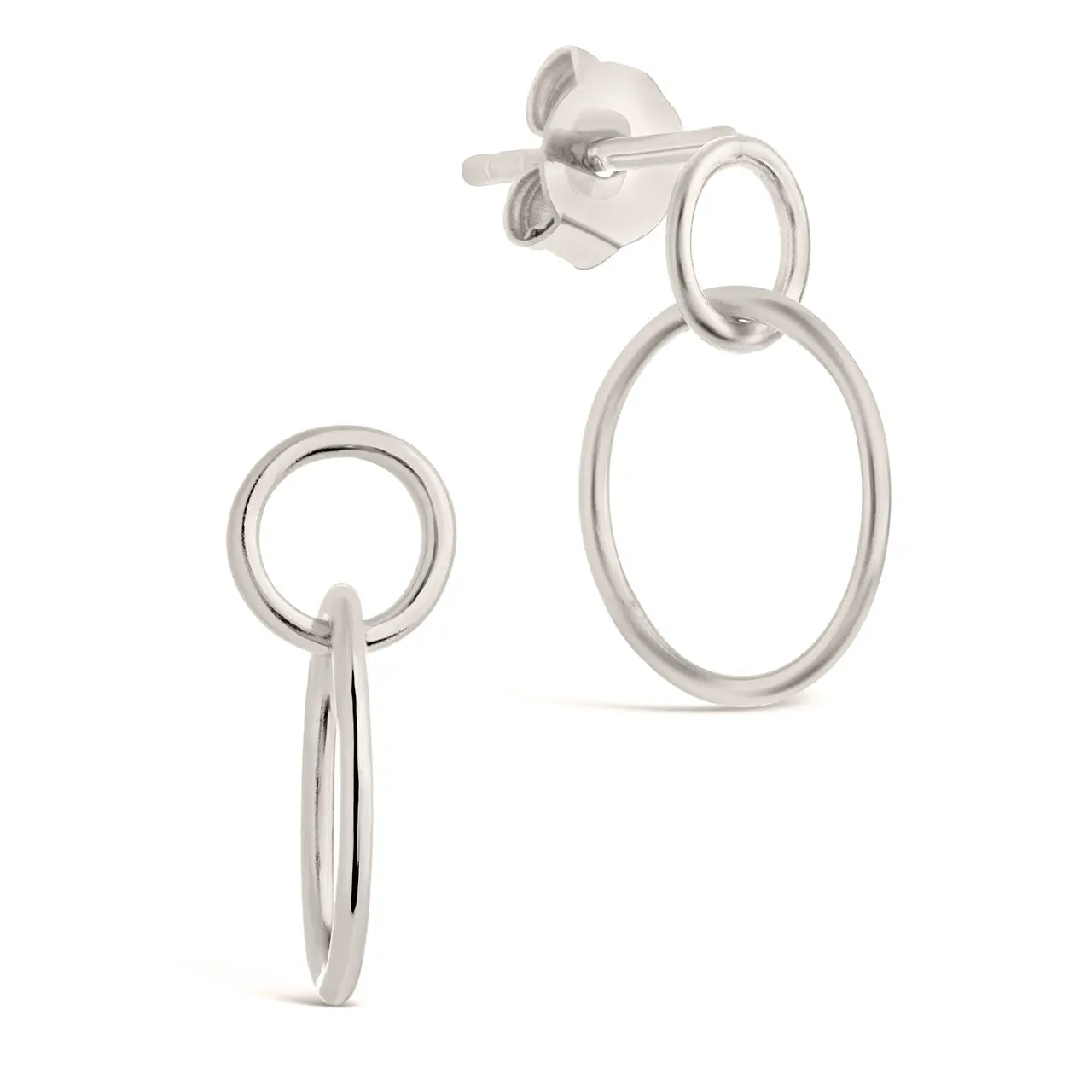 Sterling Silver Simple Interlocking Circle Dangle Earrings