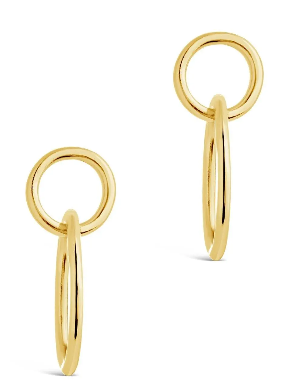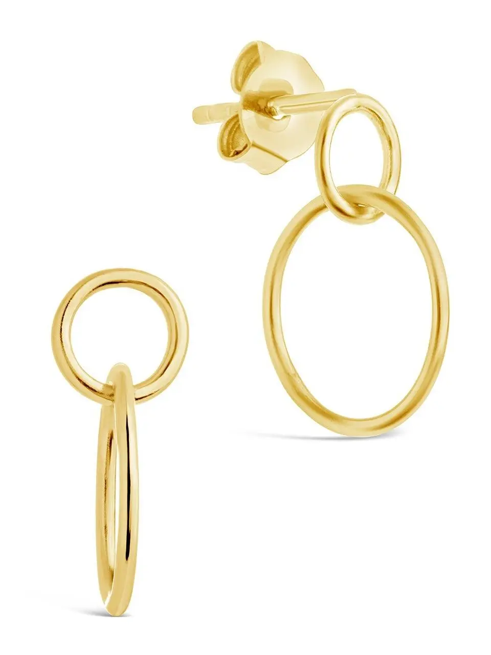 Add a touch of shine to your look with these simple interlocking circle dangles! These attach snugly to the ear with a post back and feature a pair of sleek circles. Available in gold and silver tones.
