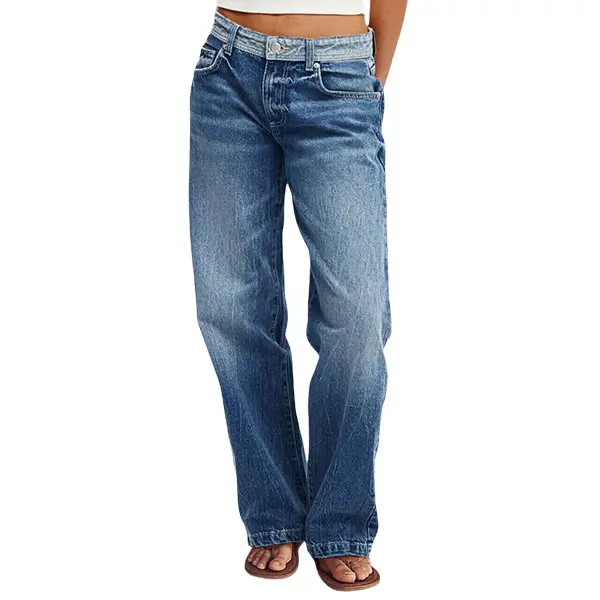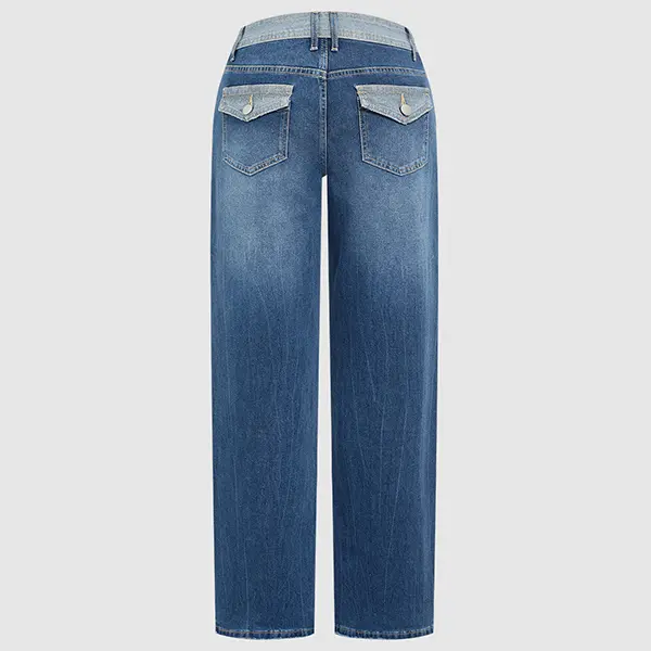 5. Flamingals Colorblock Flap Pocket Back Low Waist Straight Leg Jeans Womenswear Bottoms