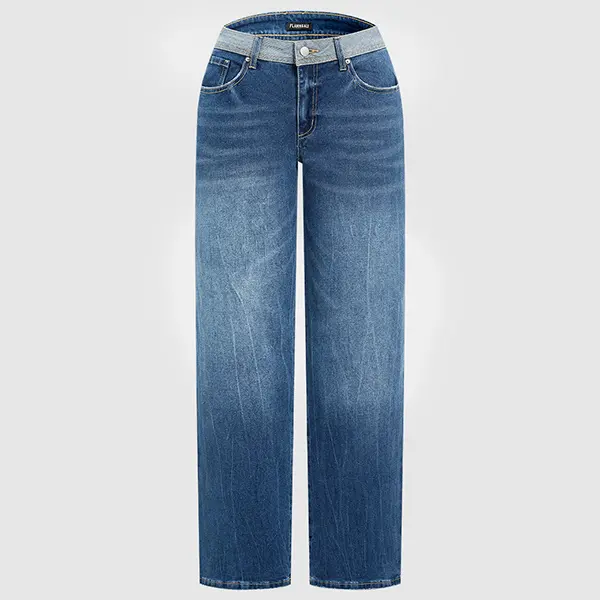 Discover the perfect blend of style and comfort with these Flamingals Colorblock Flap Pocket Back Low Waist Straight Leg Jeans.