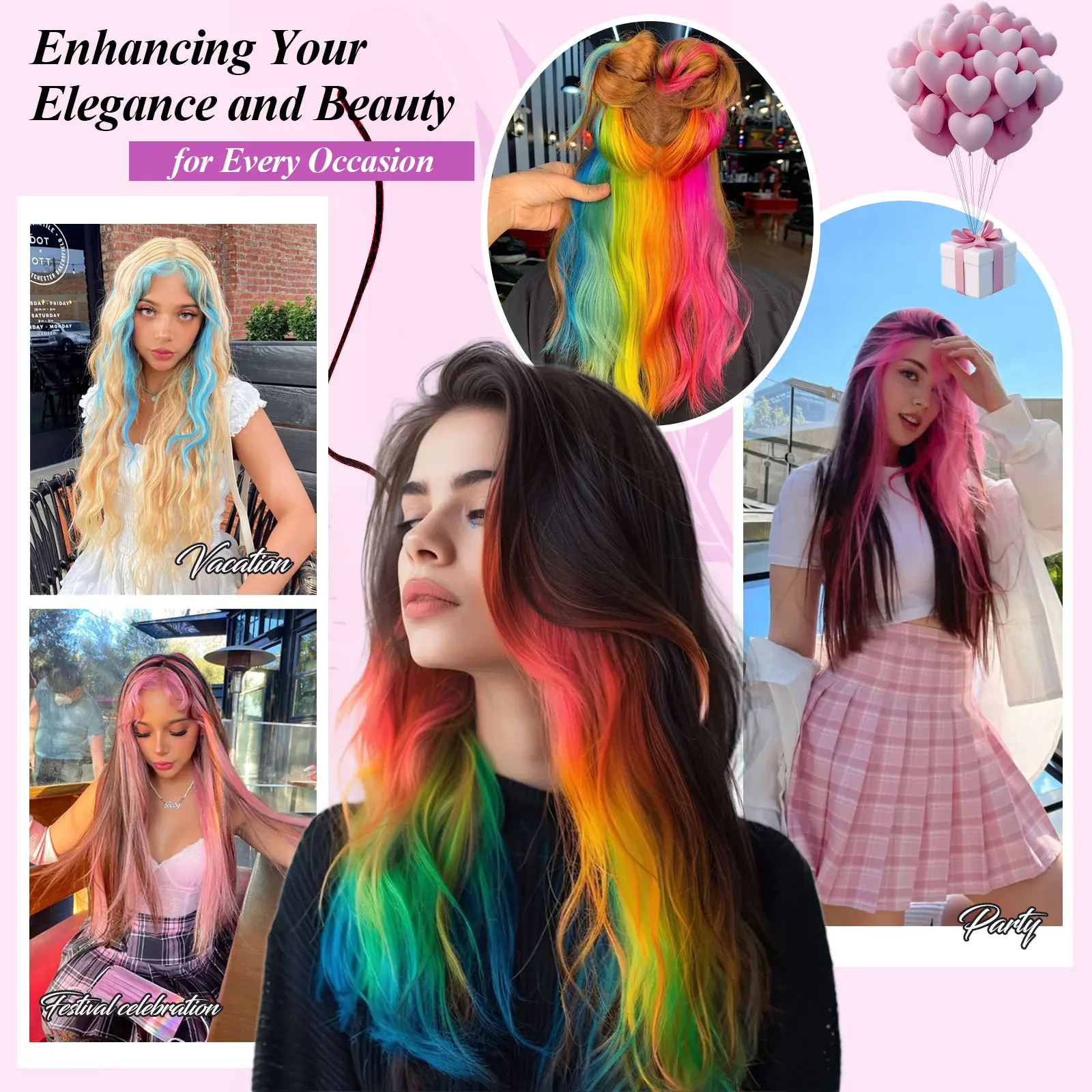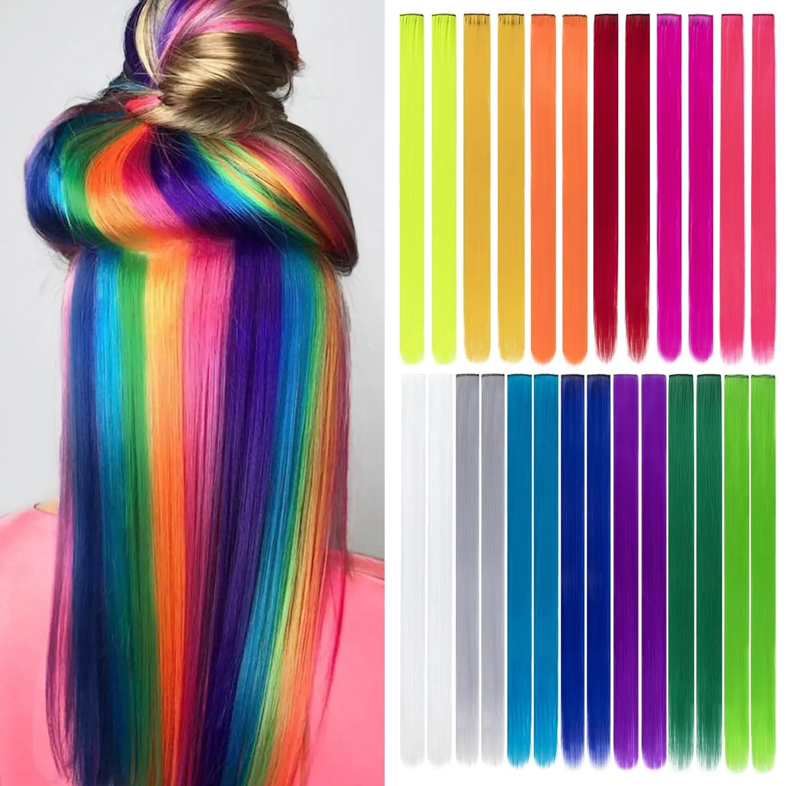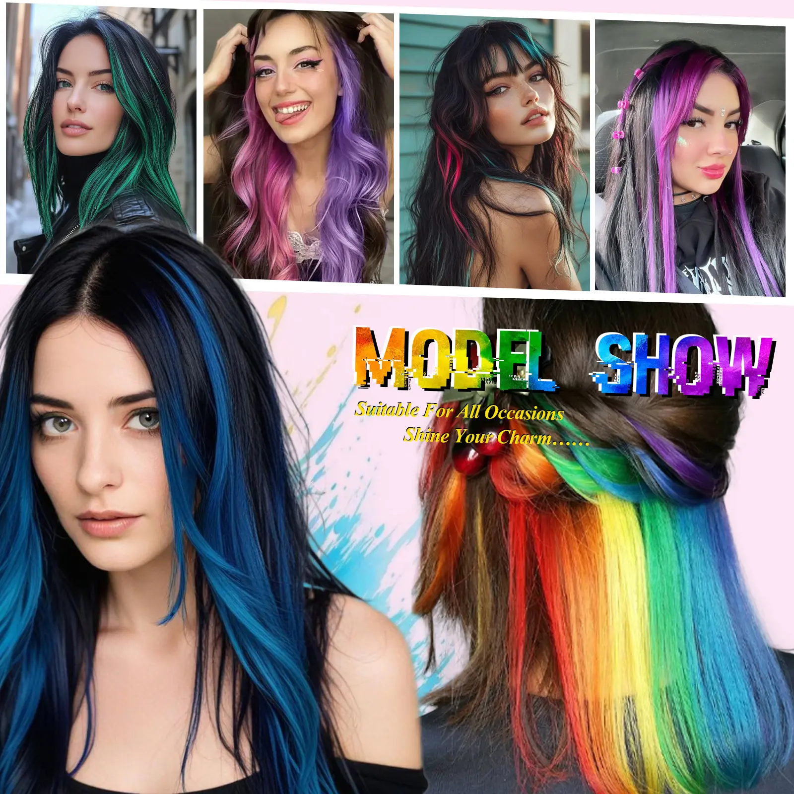 I've been wanting to have rainbow streaks for a long time but I didn't want the commitment of bleaching and dying and redying.These are a perfect alternative. They clip in pretty easily. Now I can just pop in whatever color streaks I want.
