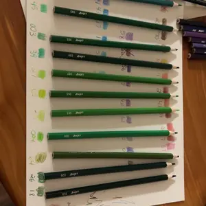 The shades don’t seem to match the pencil. I’ll pick up a brown and it’ll have red or purple hue, red will have purple or orange, half the blues are a shade of aqua. I spend a lot of time trying to correct a red or purplish tree so it’s brown and cover the blue green leaves. Not happy with these