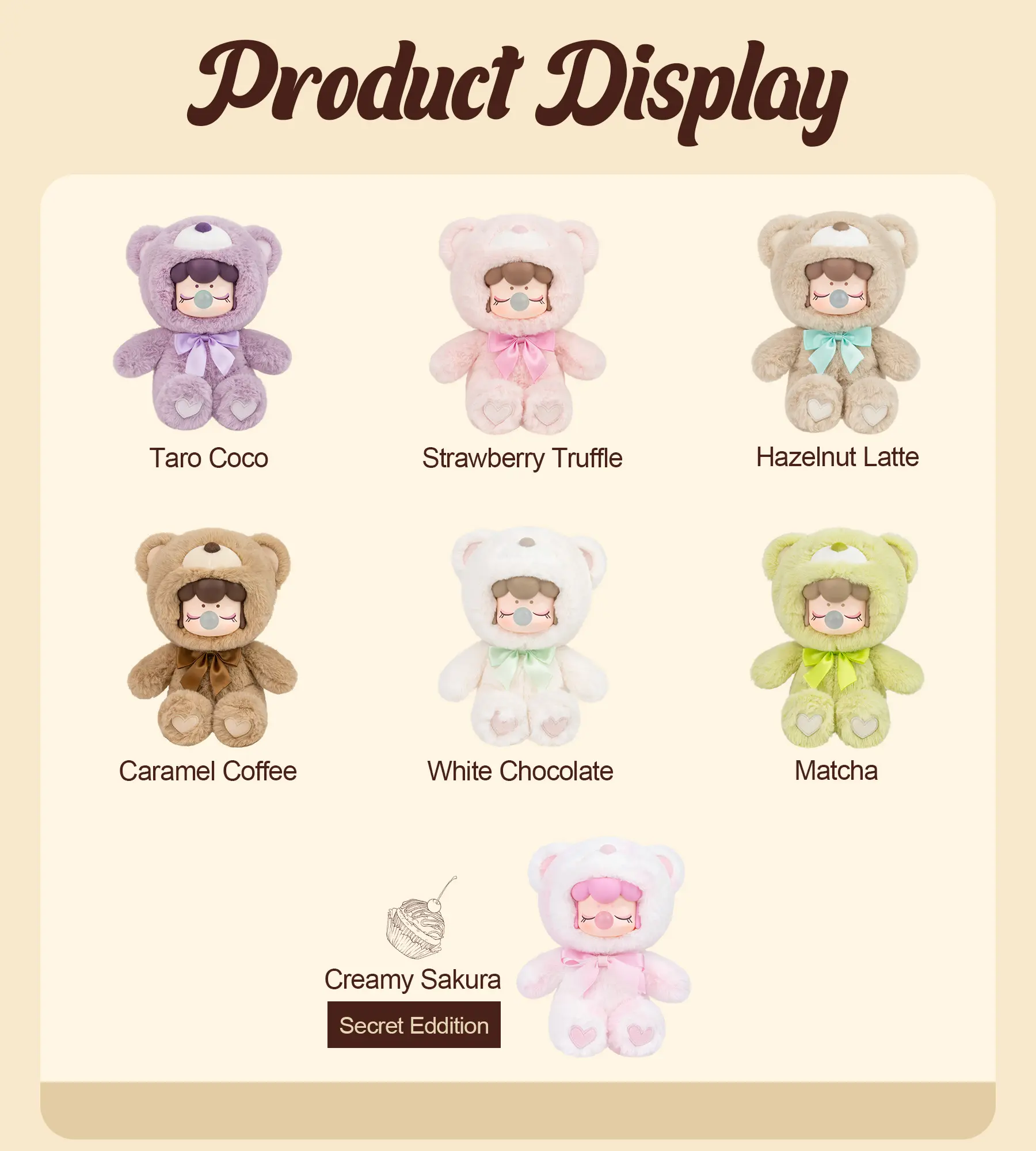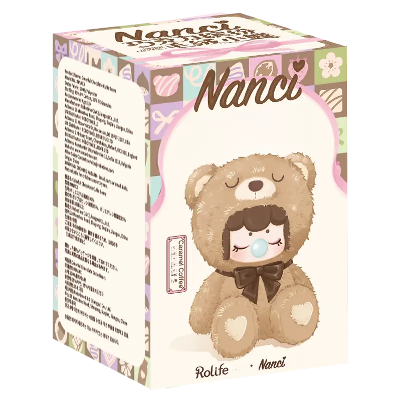 【Rolife Nanci Blind Box】This Chocolate Colorful Plush Bear series includes 6 different color and 1 SECRET EDITION figures (pink). Each blind box contains a character card.