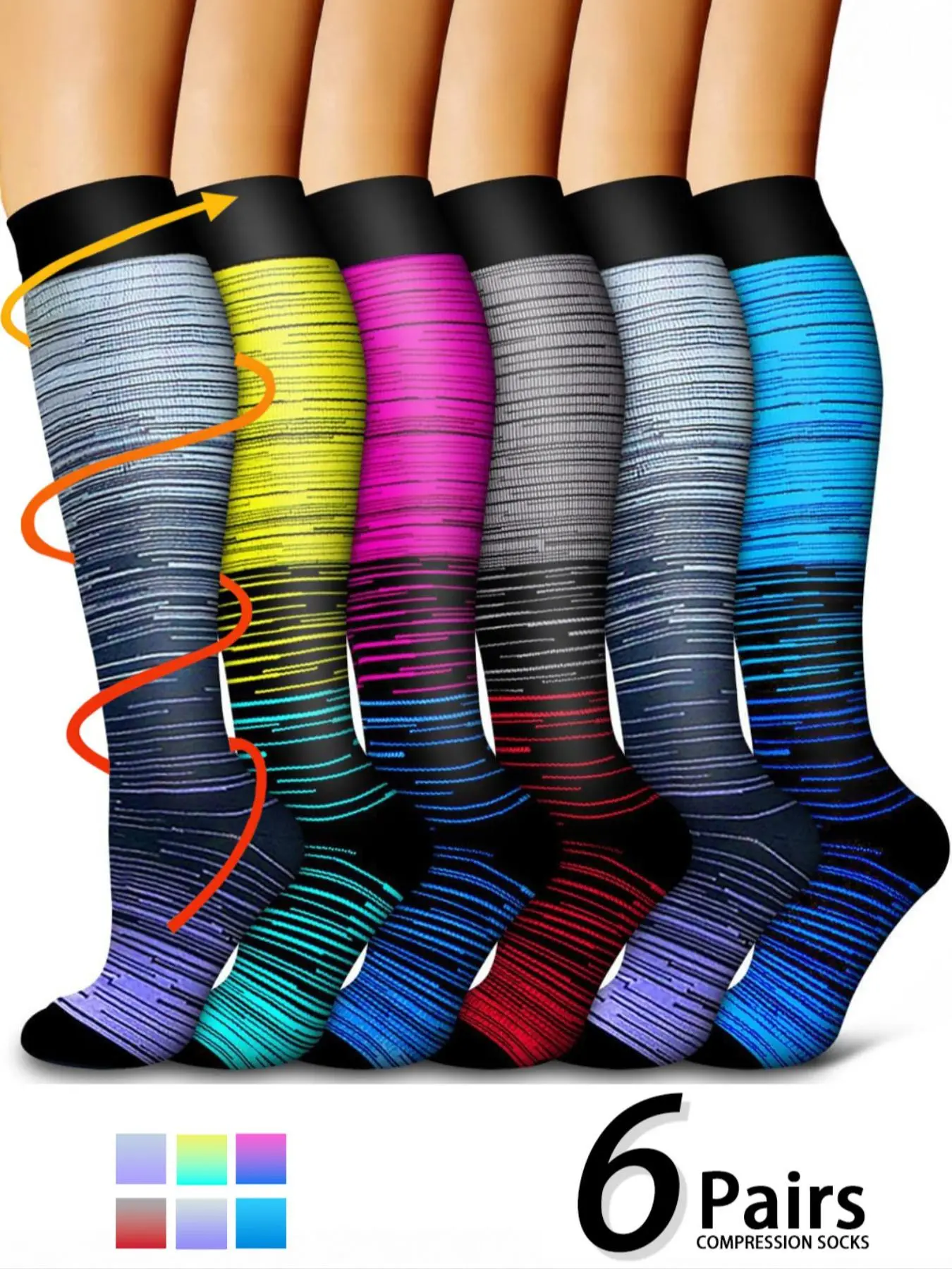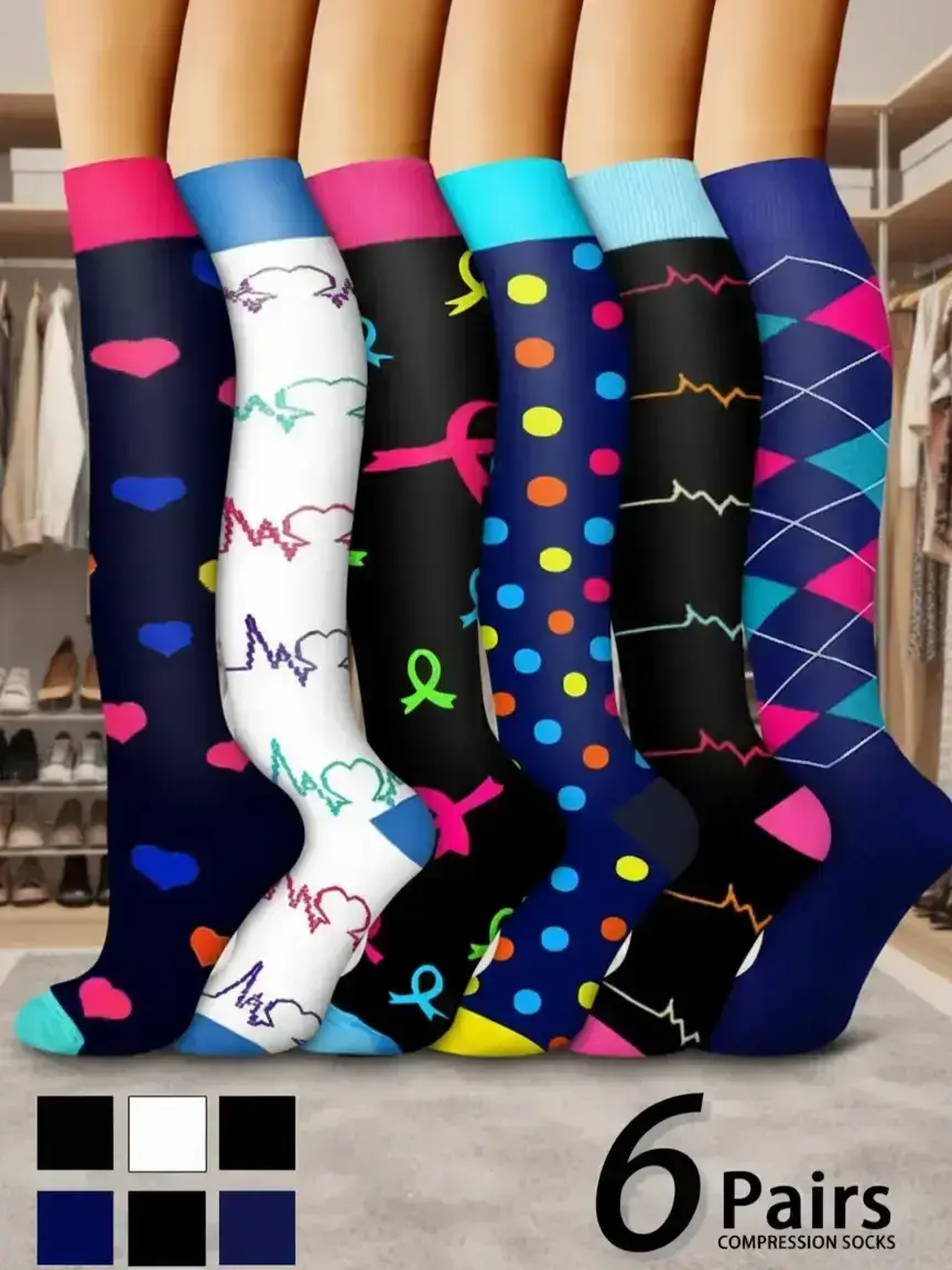 Cute compression socks! They are soft with mild compression. They are also colorful!