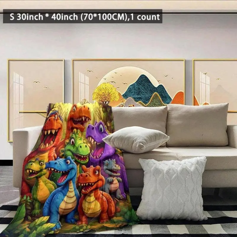 Colorful Cute Dinosaur Jungle Flannel Blanket Soft Cozy Gift Throw with Cheerful Cartoon Dino Design Perfect for Gifting to Kids Snuggling Warmly or Adding Playful Prehistoric Charm to Any Space