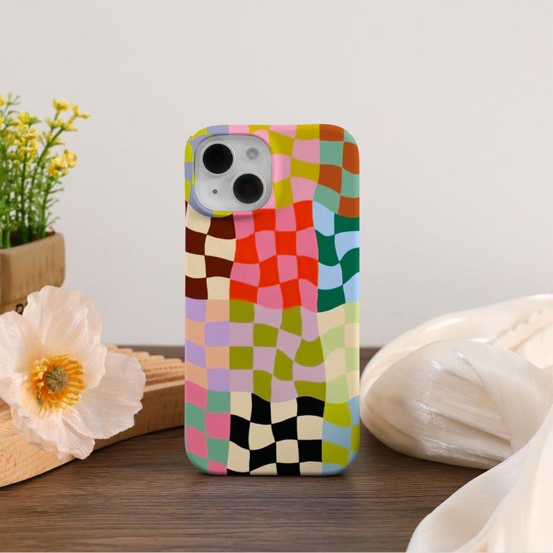 5. Colorful Distorted Checkered iPhone Case Cover For iPhone 16 15 14 13 12 Pro Max Plus Mini iPhone 14 13 12 11 X SE Case Trendy Tough Case, Phonecover, Protective, Gift for her