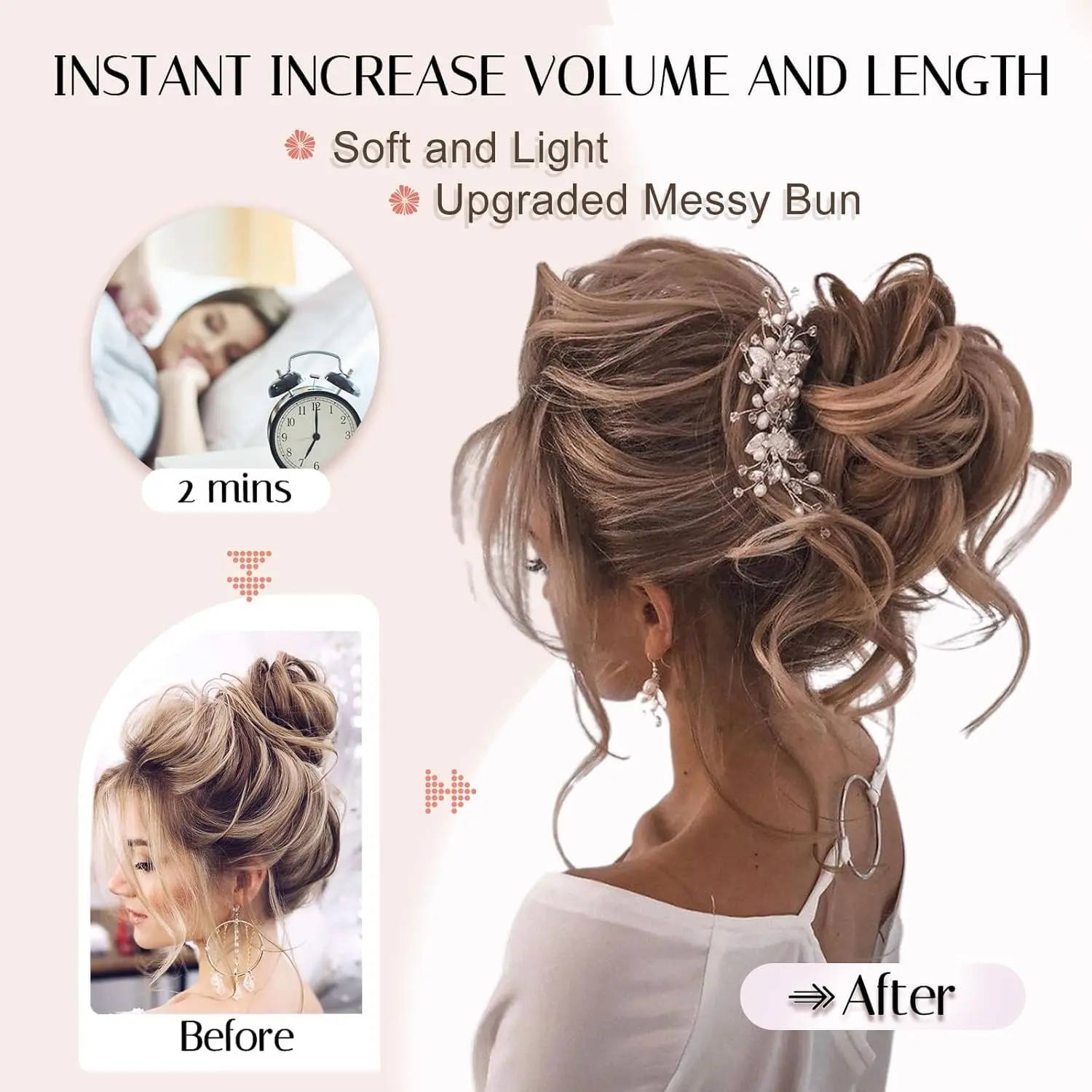 ยทBest Fit for Thin to Medium Hair : This fluffy and glossy messybun hair piece in Light Brown mix Blonde shades is soft to the touchlooks natural, and stays secure all day. Designed for women,ladies, girls, and kids with thin or medium hair volume, it addsfullness effortlessly without discomfort