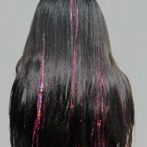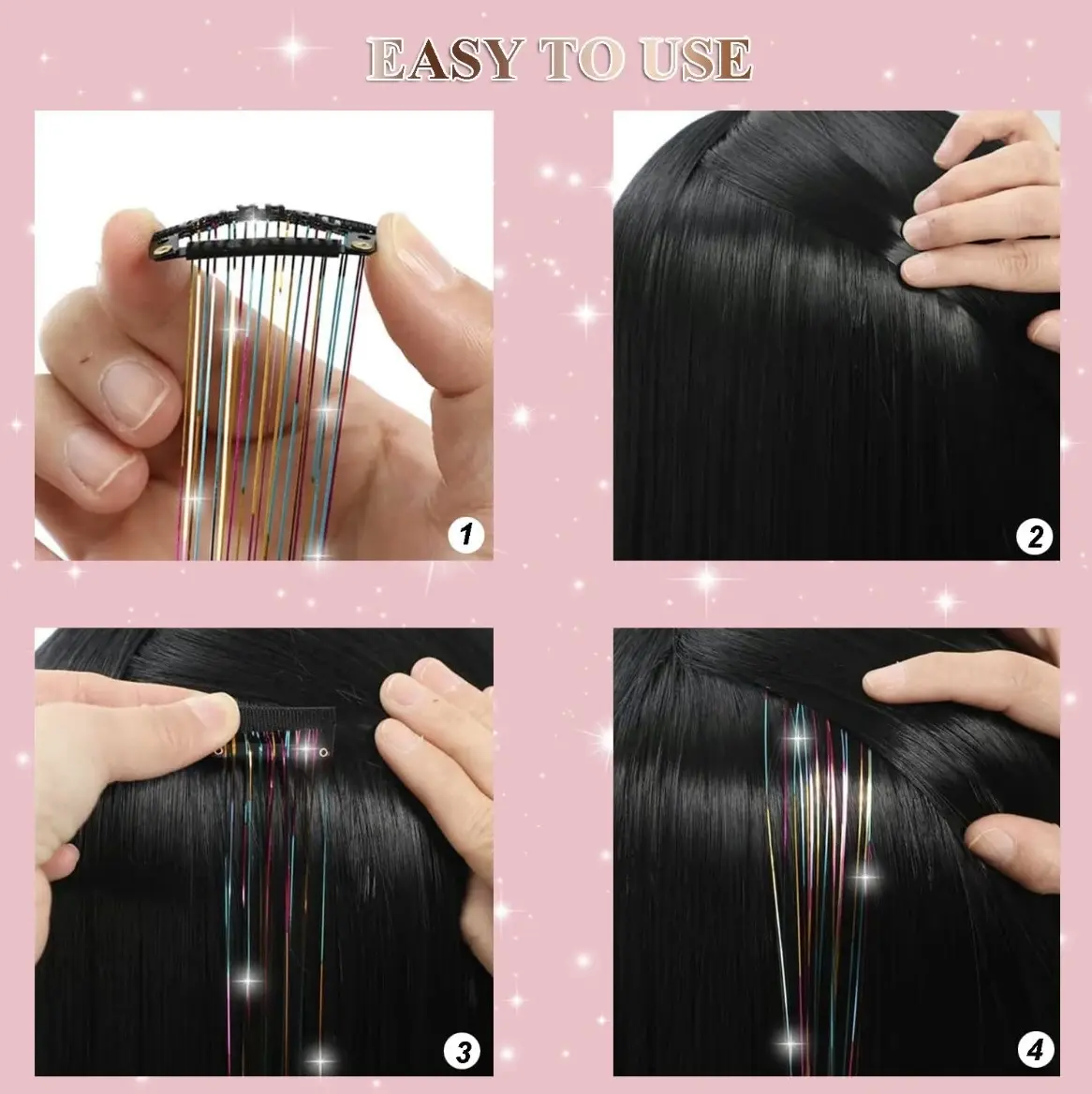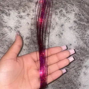 The product quality is great! The vibrant purple sparkle is so beautiful in the sun. My daughter is excited for me to do her hair using this clip in hair tinsel she said she's gonna feel like a princess. It's easy to use and easier to remove when done.