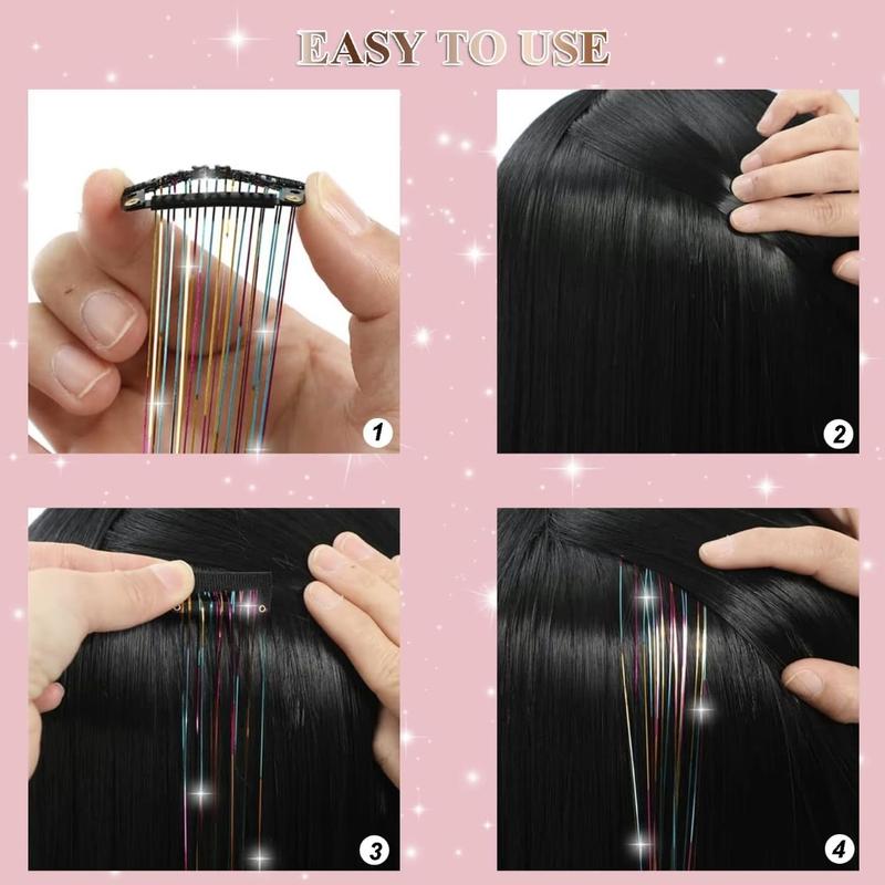 These are so fun!! Light, easy to put in the hair. Cut tinsel to desired hair length.