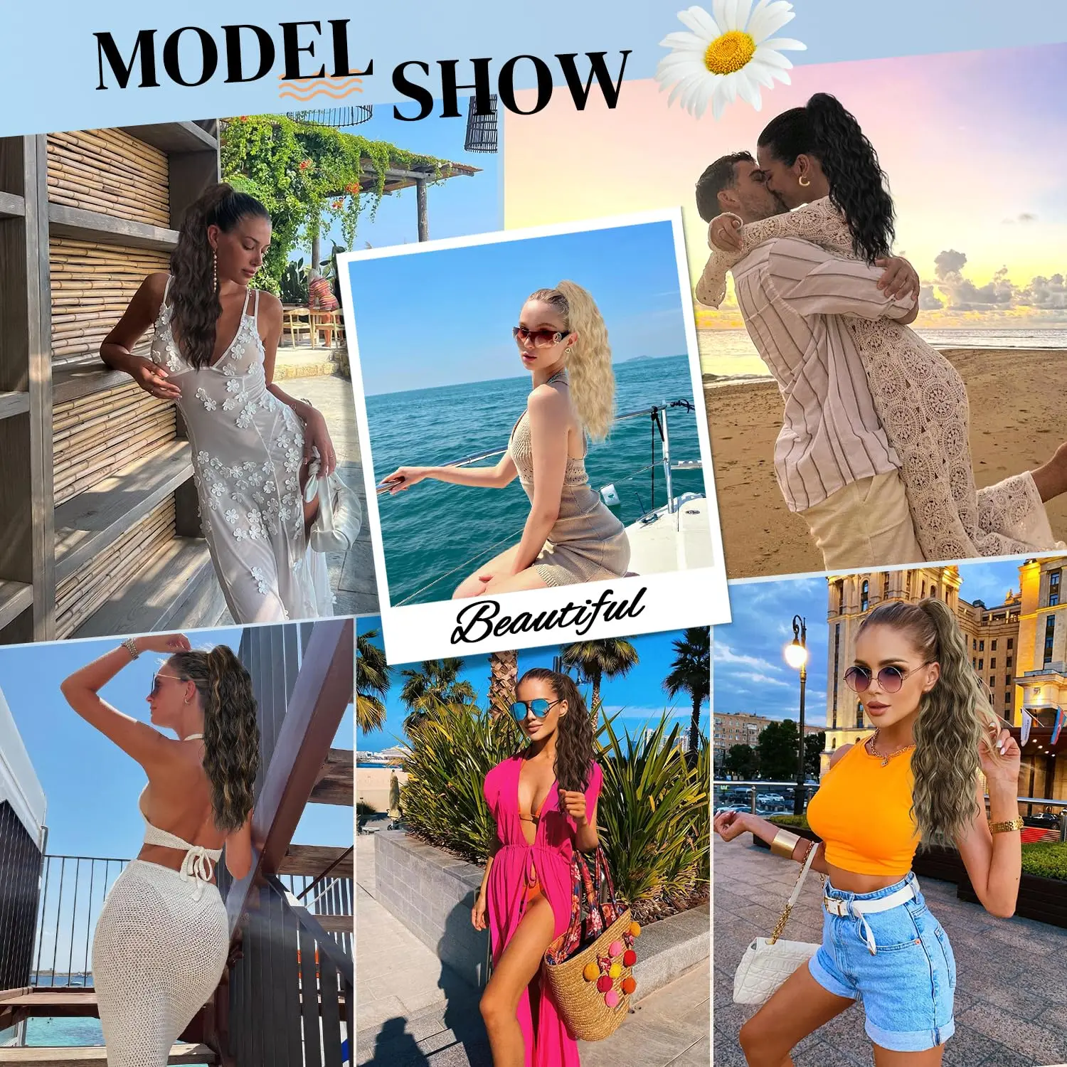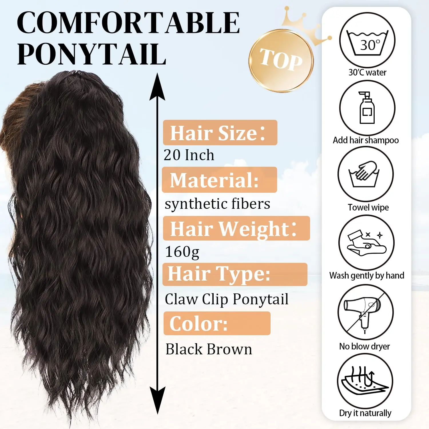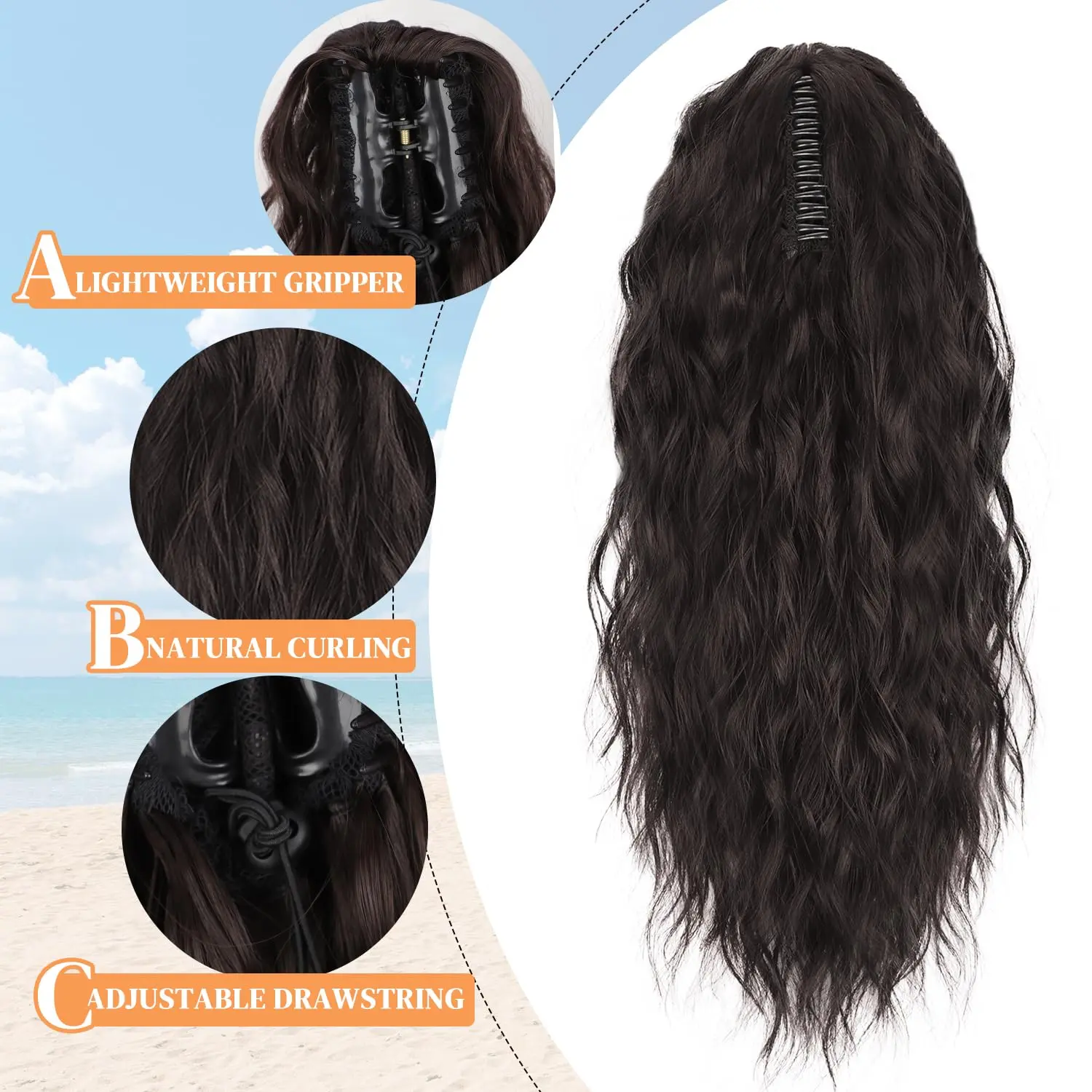 ·Material Introduction: Our ponytail extensions are crafted from high-quality synthetic fibers, ensuring a safe, comfortable, and beautiful touch. The material is soft to the hands and mimics the feel of natural hair, perfect for adding volume and length to your ponytail. Length: 20 inches with a wavy texture, Weight: 160g.