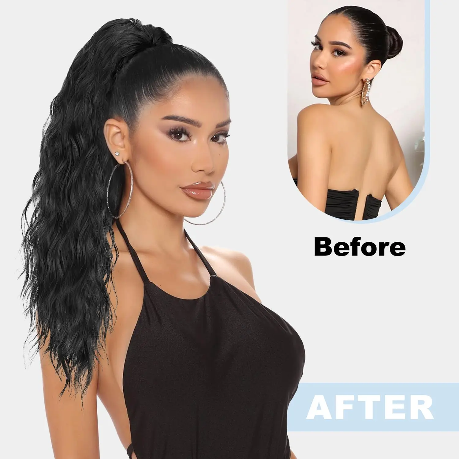 ·Material Introduction: Our ponytail extensions are crafted from high-quality synthetic fibers, ensuring a safe, comfortable, and beautiful touch. The material is soft to the hands and mimics the feel of natural hair, perfect for adding volume and length to your ponytail. Length: 18 inches with a wavy texture, Weight: 150g.