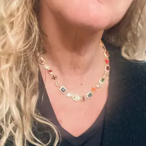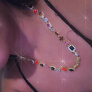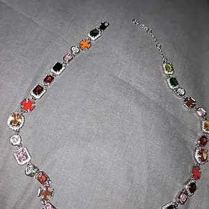 Such a great product. Cute gems, the color really pops, and the shine is immaculate π€© word of advice put the necklace on backside and by placing the clasp at the front, then pulling around. It will prevent the necklace from flipping over. ππππππ