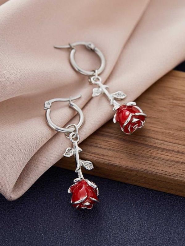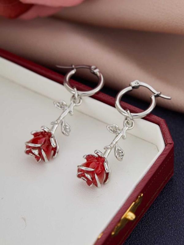 【Creative Elements】: Featuring a unique suspended rose pendant design, these earrings combine street fashion with artistic creativity, ensuring you stand out in any crowd.
