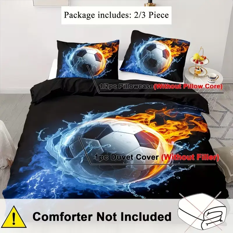 3pcs Colorful Football Pattern Bedding Set, Clear Digital Print, Suitable for Bedroom and Guest Room, Available in Various Sizes
