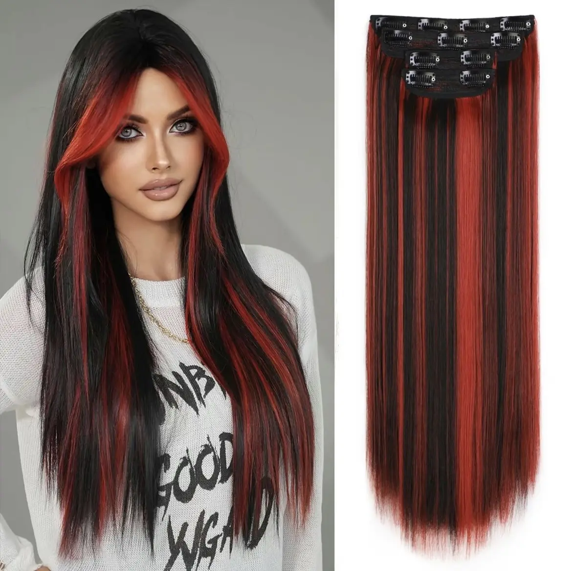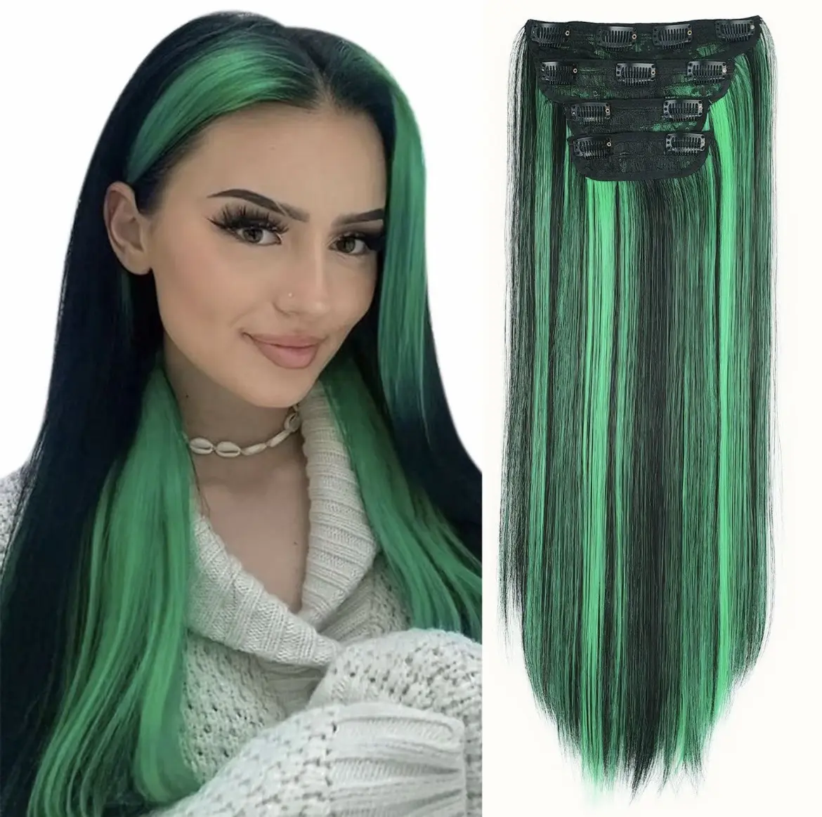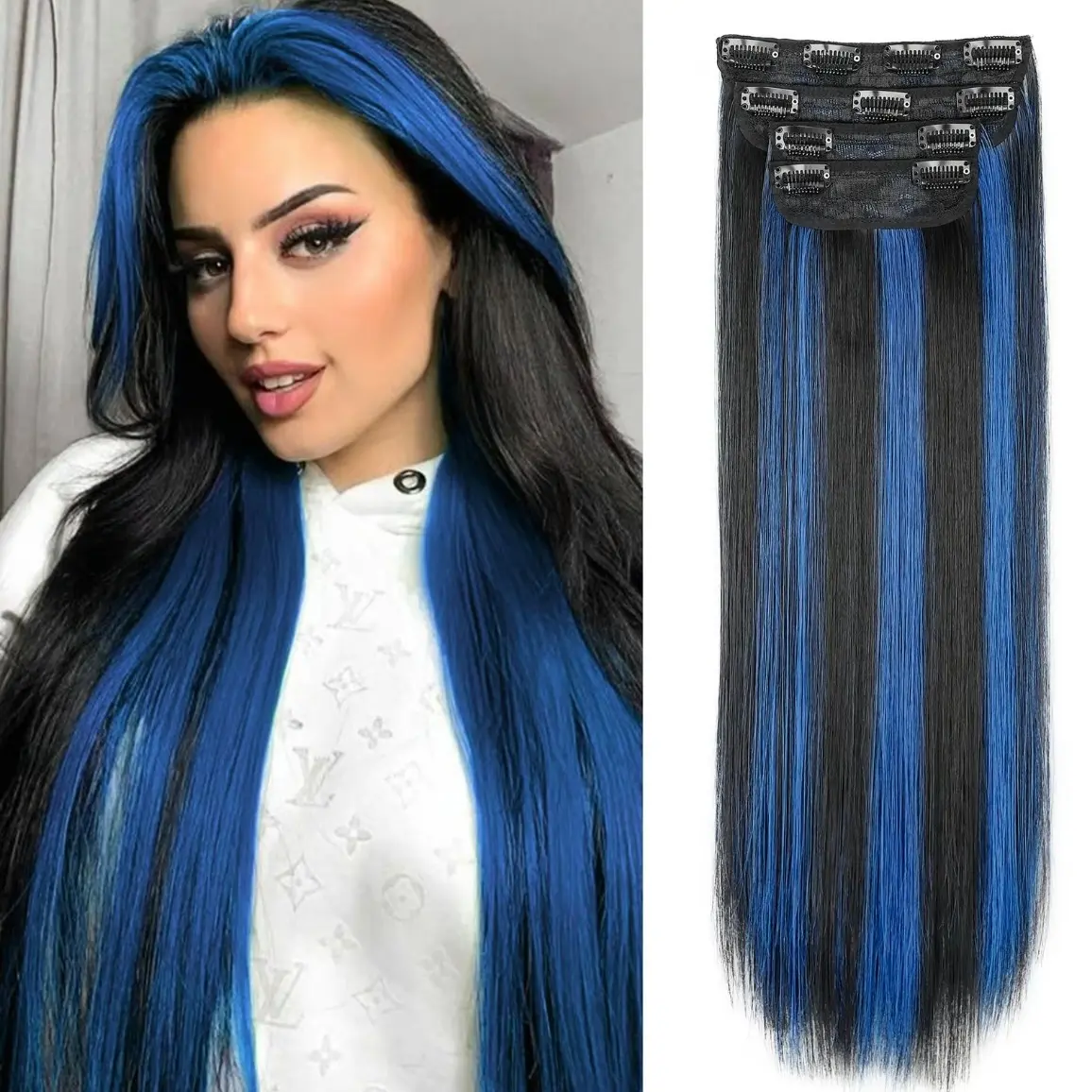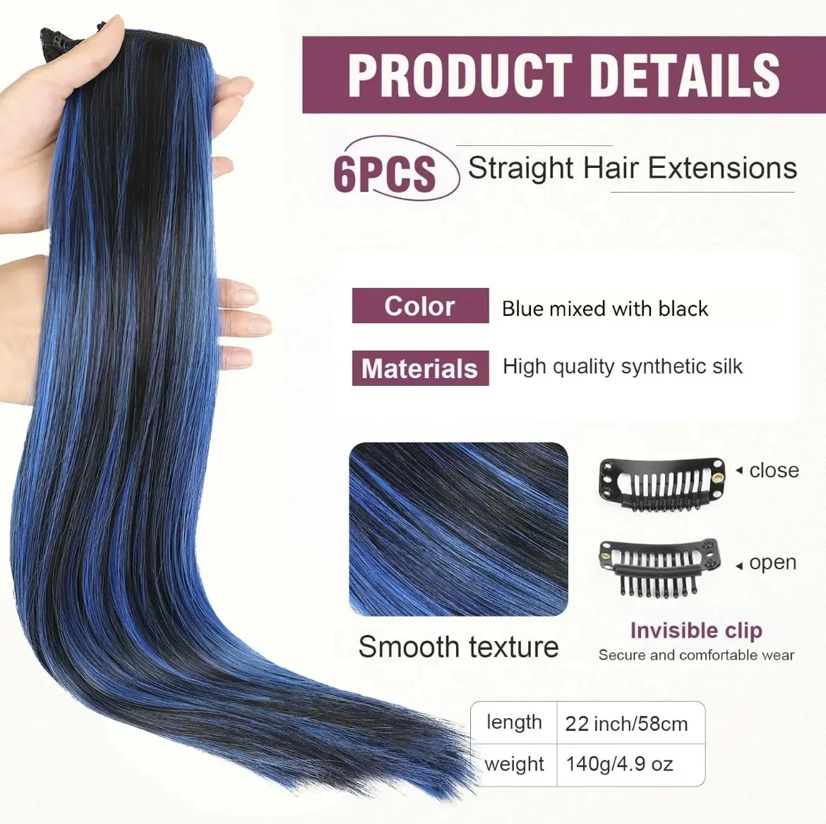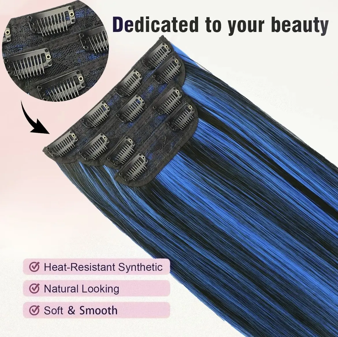 ·【Hair Extensions Quality】NAYASA Clip in hair extensions made of high grade synthetic fiber,this hair extensions feels smooth and soft like real human hair.It contains sturdy and long-lasting clips that are simple to attach and remove without pulling your hair.this clip in hair extensions will last about 2-5 months with good care.