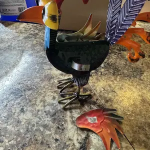 ·Material: Rustic Iron Size: 7.87x5.91 inches Design: Colorful Metal Strange Bird Style: Farmhouse Style Usage: Outdoor Decorative