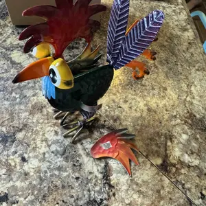 ·Appearance: Colorful Metal Rooster Statue Setting: Outdoor setting, garden, farm