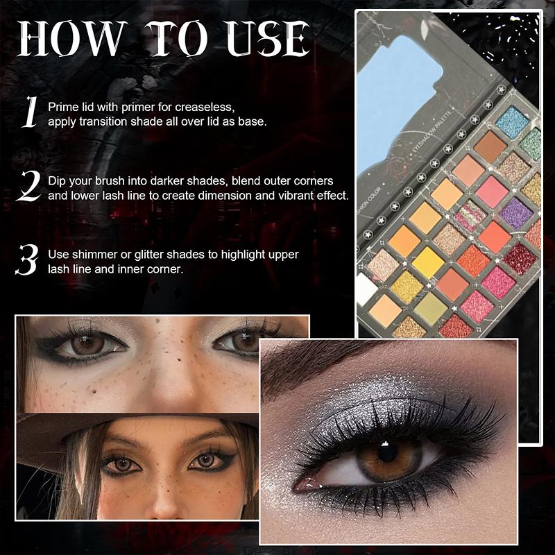 Colorful Rainbow Magic Witch Eyeshadow Palette - 32 Vibrant Glitter & Matte Shades for Dramatic Makeup Looks, Deep and Infinite 32 Col, Matte + Shimmer, Ideal for Creative Eye Makeup - Blend