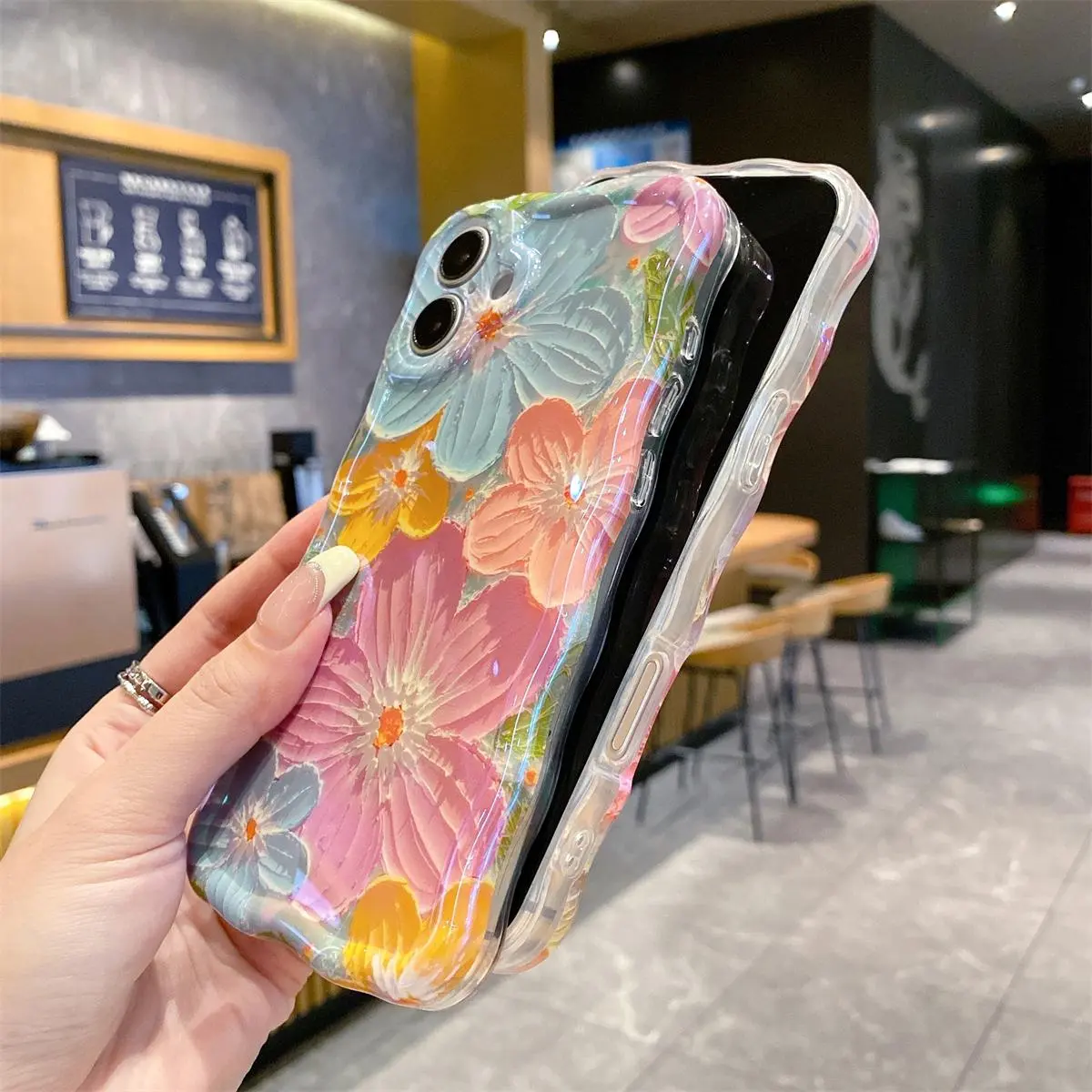 Ever wish your phone case could be both a fashion statement and a protector? This colorful retro oil painting floral case is just that! Designed for iPhone 11 through 17 series, it features a cute curly wave frame that not only looks adorable but also offers a better grip. The raised lens frame safeguards your camera lens from scratches and bumps, giving you peace of mind while snapping pics. Made of soft TPU material, the case cushions your phone from everyday drops and shocks, all while feeling comfy in your hand. Plus, the precise cutouts make charging and button use a breeze—no fumbling needed! Whether you're heading to class, work, or brunch, this floral phone case adds a splash of style and protection tailored for girls and women who love unique, fashionable accessories. Ready to turn heads and keep your phone safe? Grab this charming case and let your phone bloom with personality!