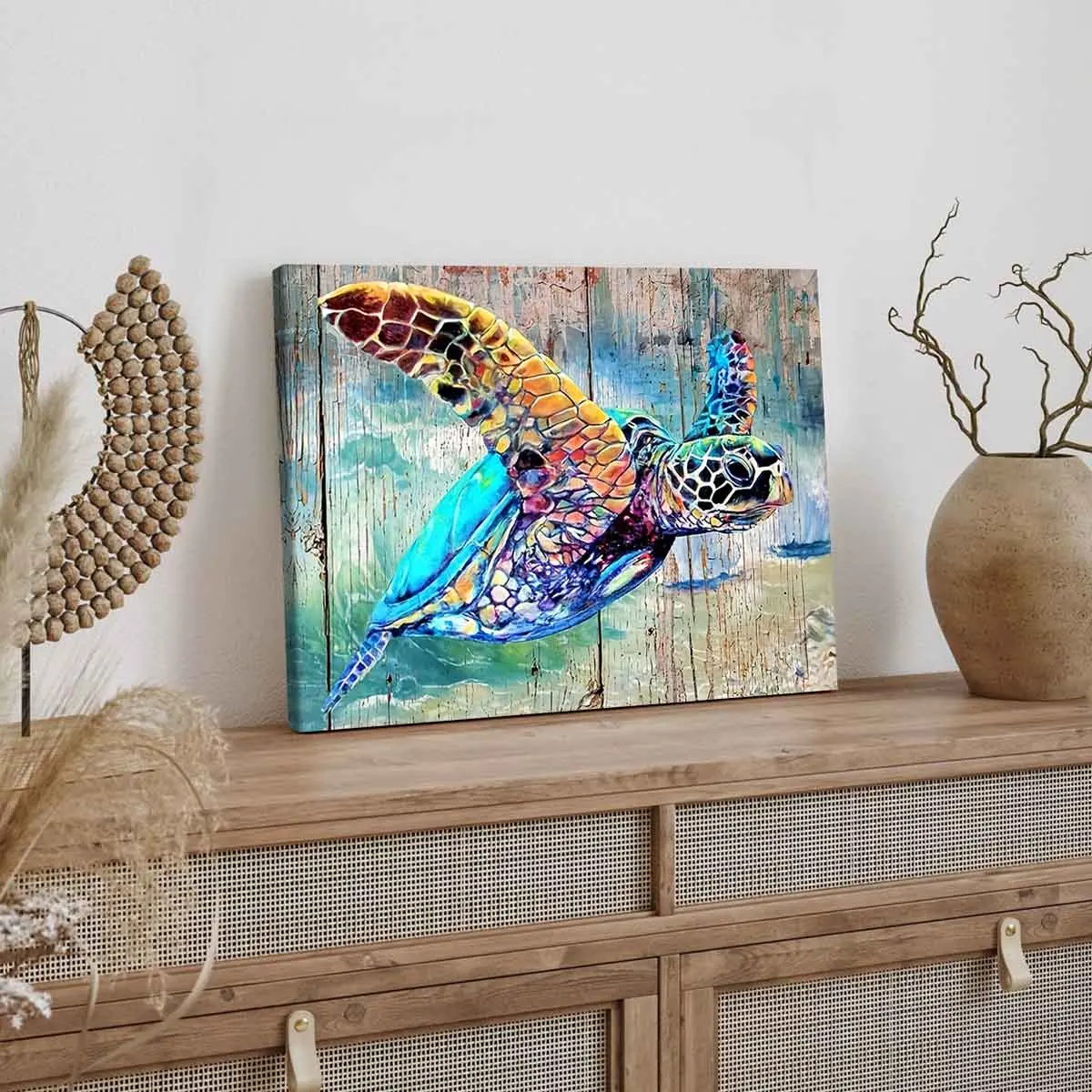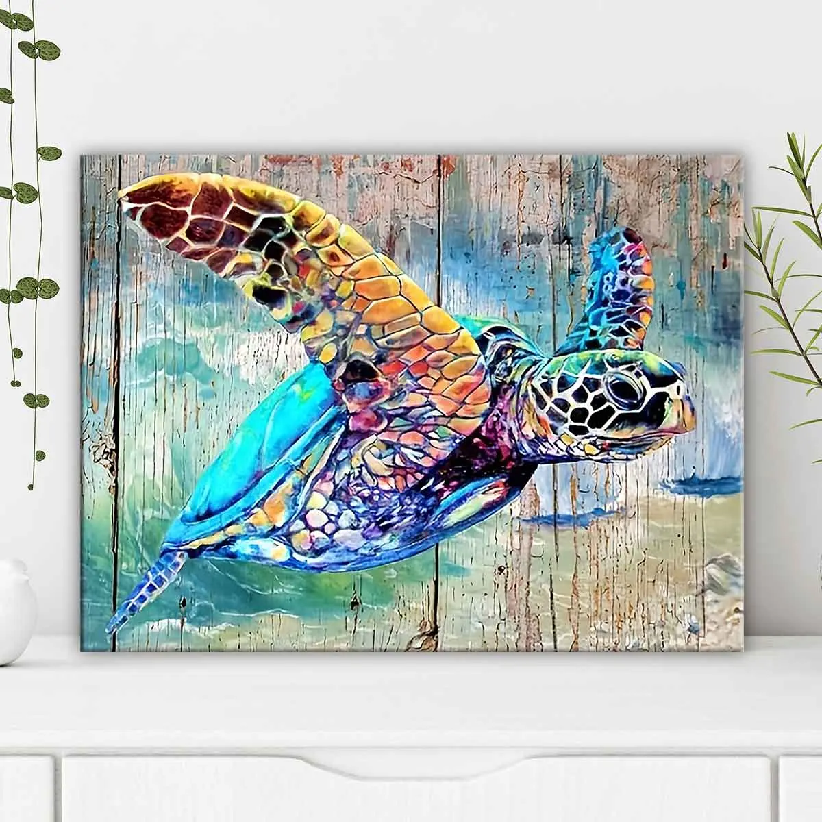 【Vibrant Imagery】: This canvas features a colorful sea turtle pattern that brings the vitality of the ocean into your decor.