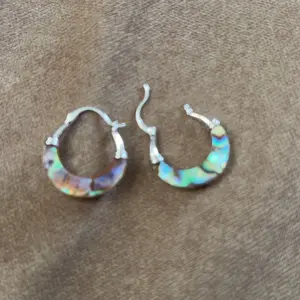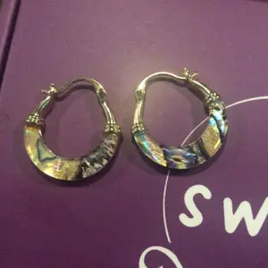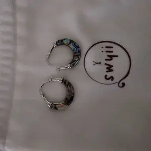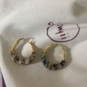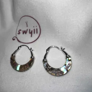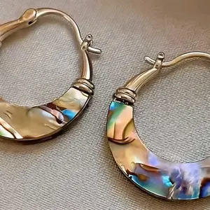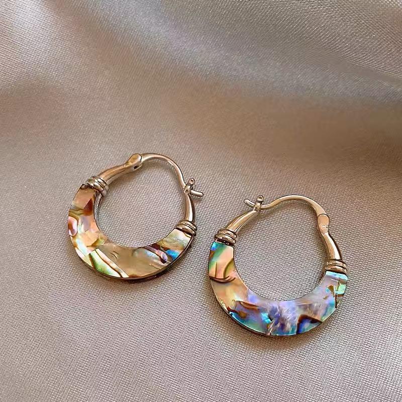 - These eye-catching hoop earrings feature vibrant abalone shell inlays that shimmer with iridescent colors. Inspired by nature, their unique design adds a bold yet elegant touchâperfect for elevating any look.