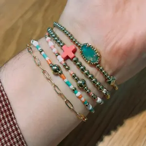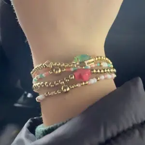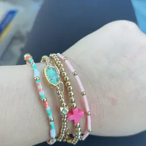 Short description: Stack your wrist with sunshine vibes 🌸✨ This pastel beaded bracelet set mixes gold tones, pink and turquoise beads, and a pop of mint green sparkle for the perfect everyday accessory. Hashtags: #BeadedBracelets #StackedStyle #JewelryLover #PastelAesthetic #TikTokShopCreatorPicks