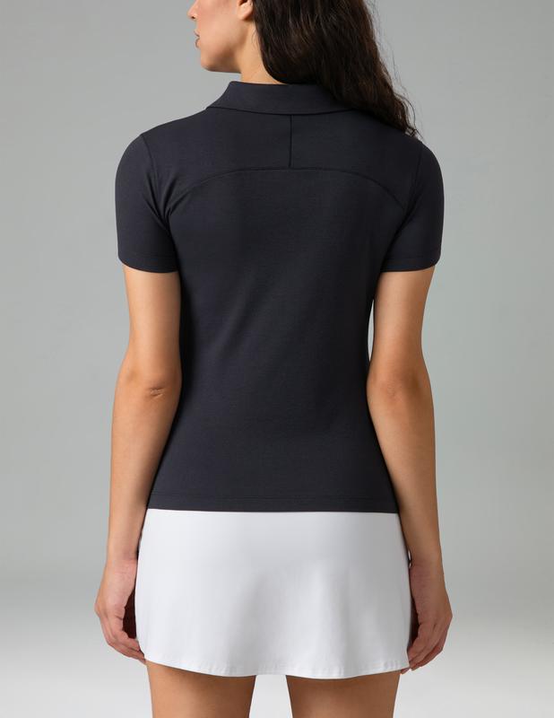 ·The three-dimensional polo collar stays crisp and upright. Decorative contour lines add a sporty touch, while Sorona fabric provides a stylish drape with lasting structure.