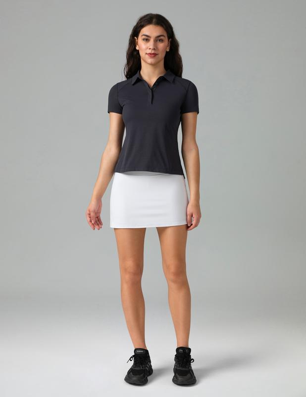 ·With four hidden buttons and a short front, long back design, this shirt flows naturally with movement.