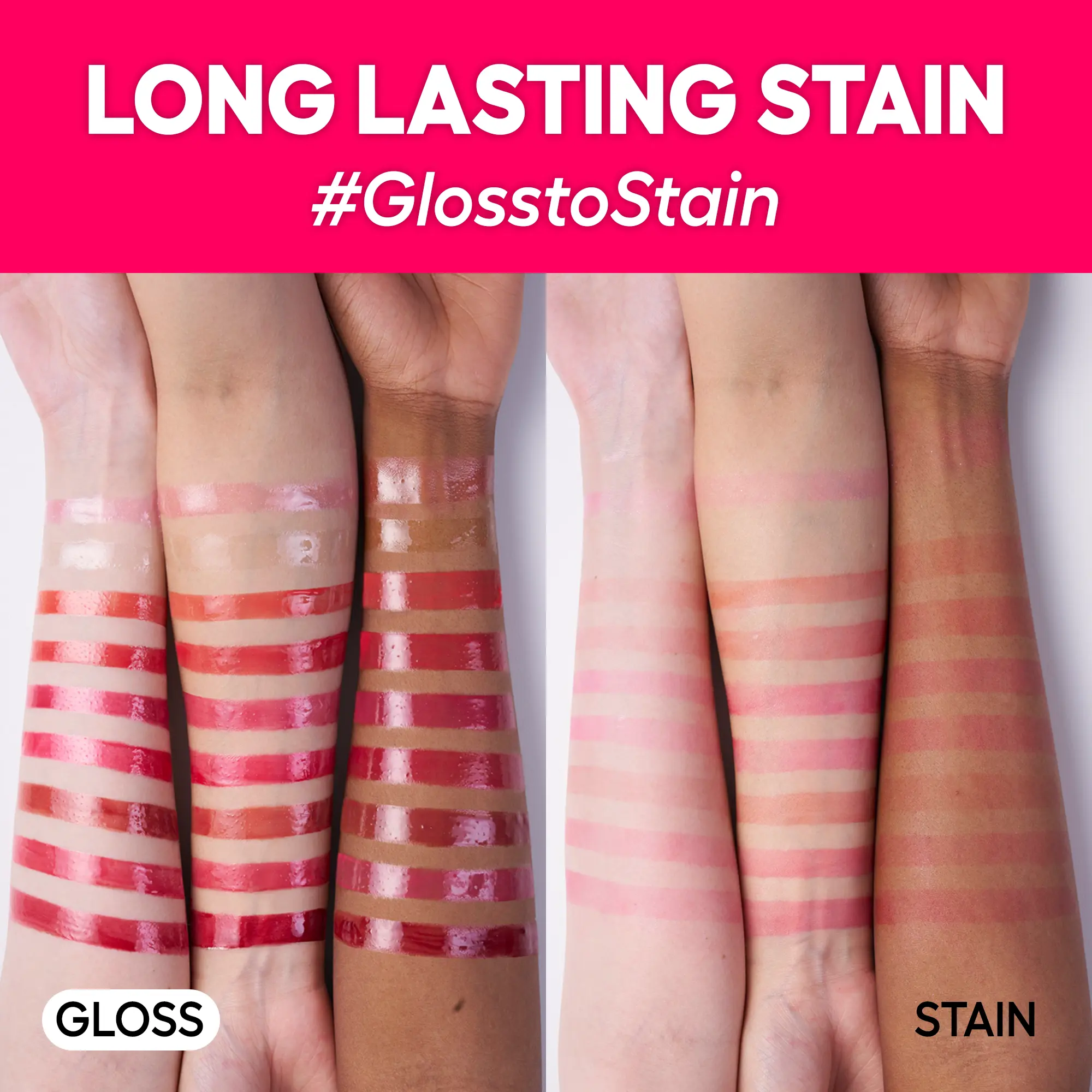 Love the color of the stain and the gloss together! The stain is buildable and blendable if youâre looking to do that gradient lip look. Not to mention the stain lasts a while if you let it set. Both feel hydrating and glossy, doesnât absorb quickly, and doesnât feel thick on the lips.