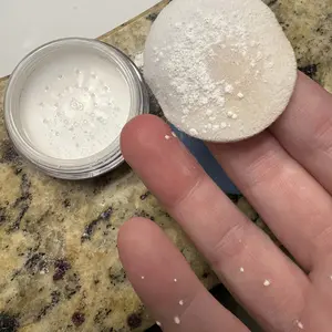 ·Compact design with built-in puff for on-the-go touch-ups