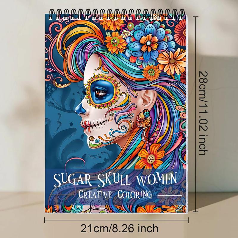 Sugar Skull Women Coloring Book, 24 Pages Spiral Bound Coloring Book, Creative Coloring Book for Adults, Art & Craft Supplies, Coloring Gift Book