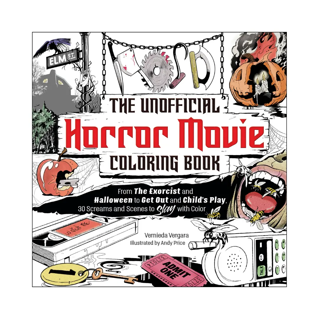Grab your colored pencils and get ready for a scare with The Unofficial Horror Movie Coloring Book, which is full of scenes inspired by your favorite horror films. What’s your favorite scary movie? With The Unofficial Horror Movie Coloring Book, you don’t have to pick just one. Featuring coloring pages inspired by your favorite scary movies, you’ll find creepy images sure to spook any horror fan. The Unofficial Horror Movie Coloring Book features art inspired by: -Halloween -Child’s Play/Chucky -Scream -The Exorcist -Annabelle -Candyman -The Amityville Horror -Evil Dead -The Ring -And more!