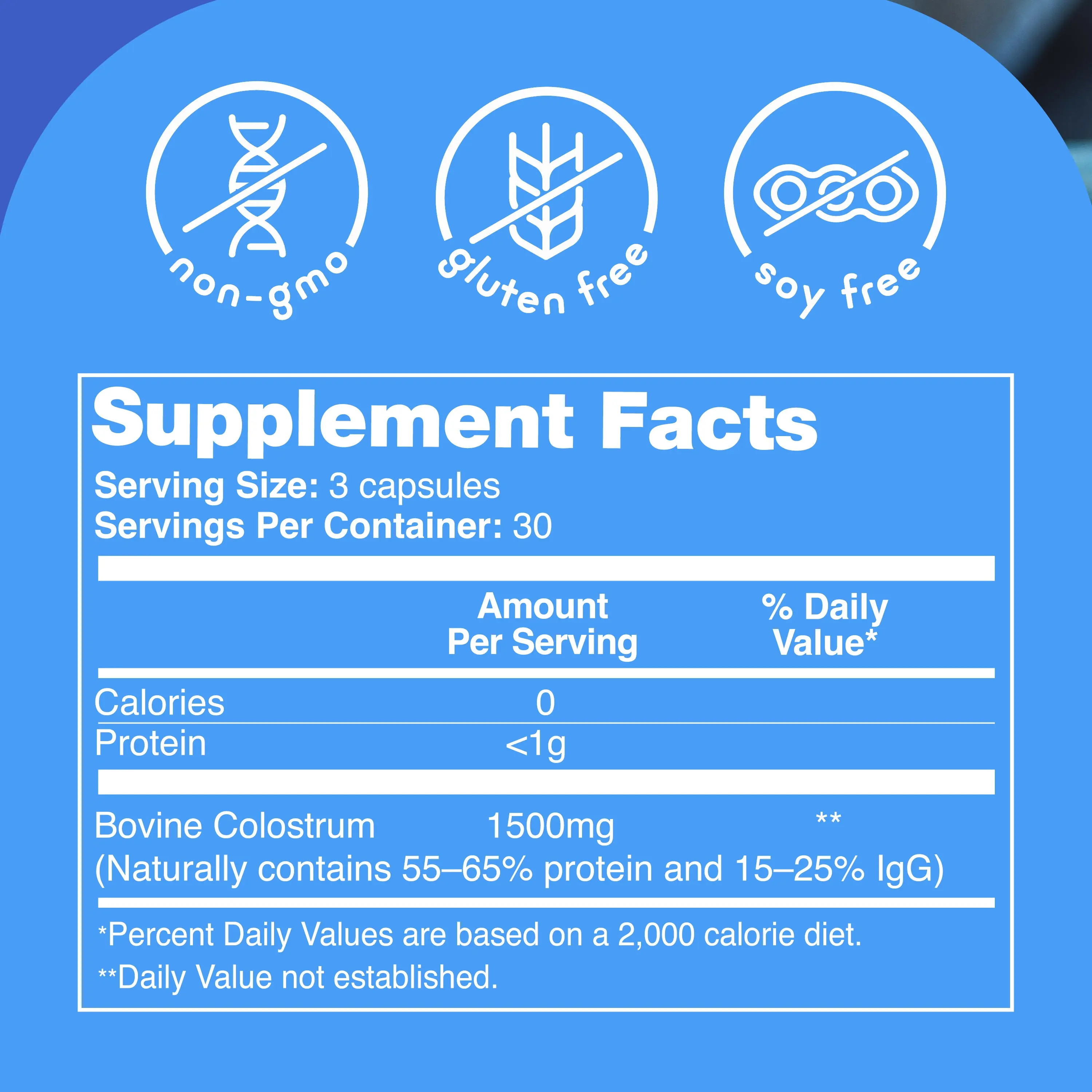 ·1500mg Pure Bovine Colostrum per Serving: Ethically sourced, grass-fed colostrum for immune boosting antibodies, growth factors, and nutrients.