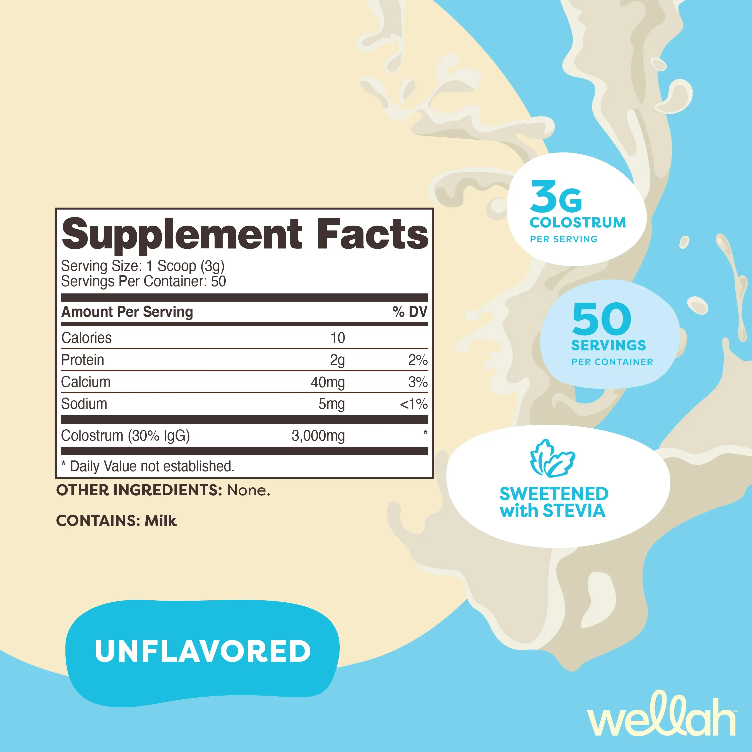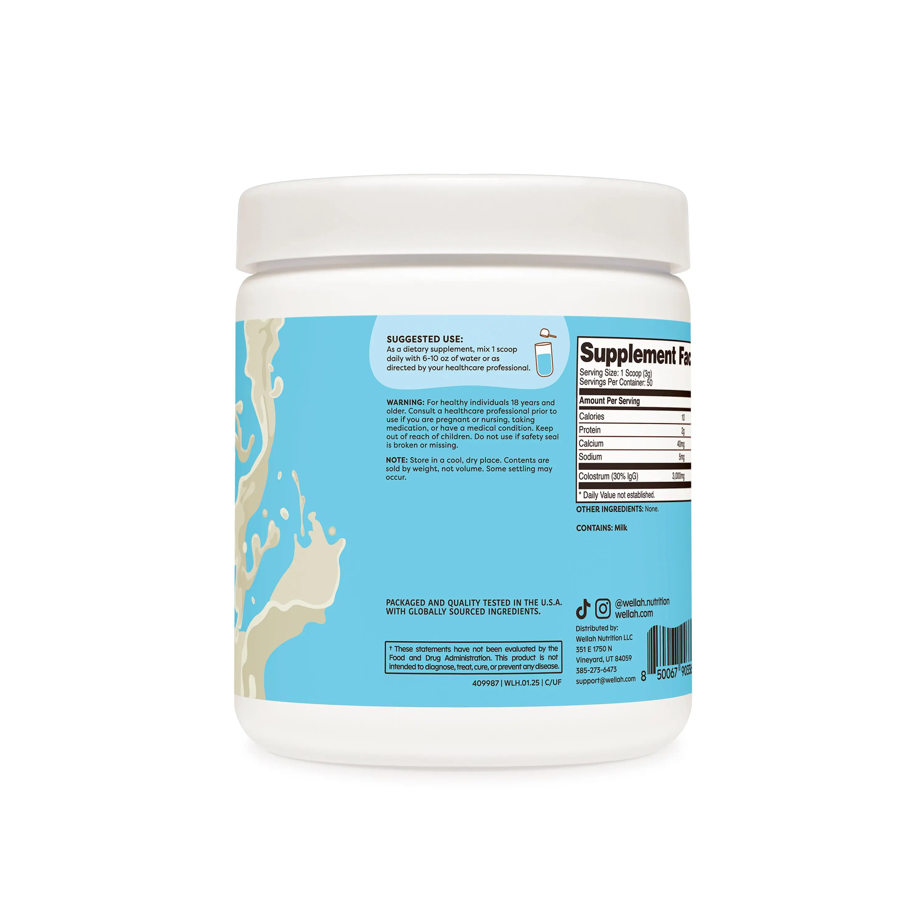 Wellah Colostrum is perfect for health-conscious adults who want to strengthen their foundation of wellness. If you struggle with bloating, gut discomfort, or just want a stronger digestive foundation, Wellah Colostrum has you covered. Each serving delivers 3 g of pure bovine colostrum—rich in antibodies, growth factors, and bioactive nutrients—to help repair and protect the gut lining while supporting smooth, balanced digestion. Mix it easily into water, smoothies, or your daily coffee for foundational wellness from the inside out.
