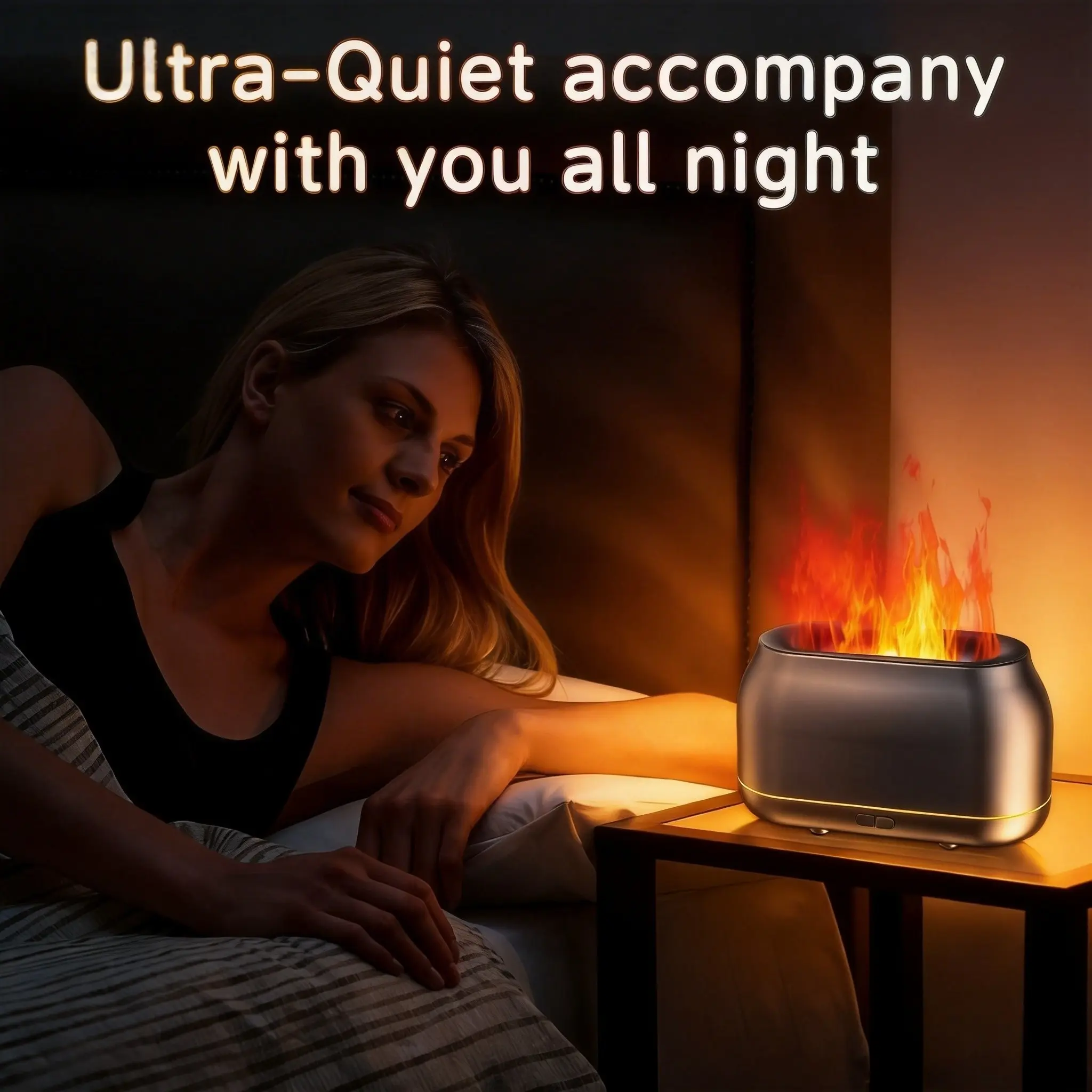 Colourful, safe, pulsating flame aroma diffuser, humidifier, with colour-changing feature