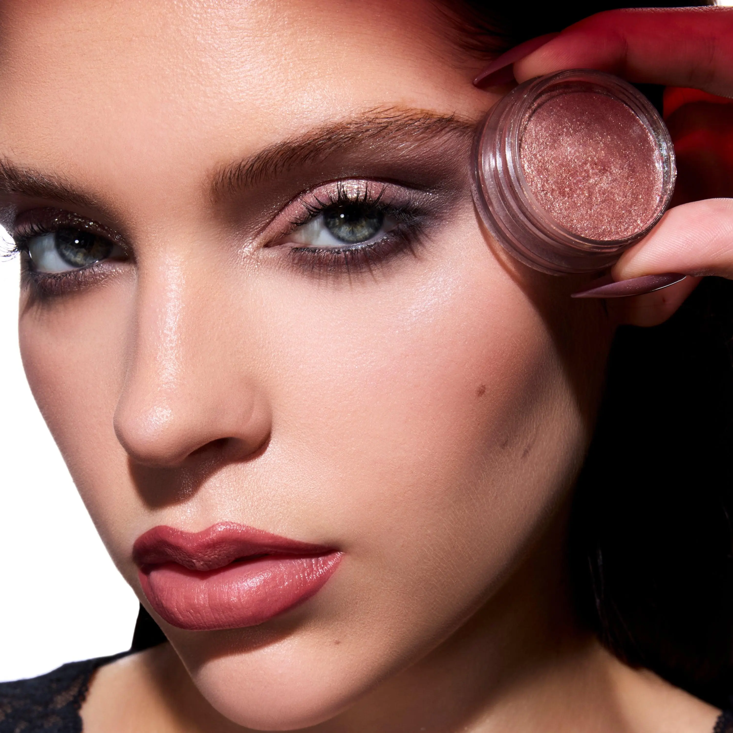 Our innovative jelly eyeshadow delivers extremely high impact looks in a single swipe. Its unique water-based gel formula saturates the pigment for immediate intense colour right on application with minimized creasing, fading and transferring. No need to wet your makeup brush or use a primer, you’ll get the look of intense shadow right from the pot!