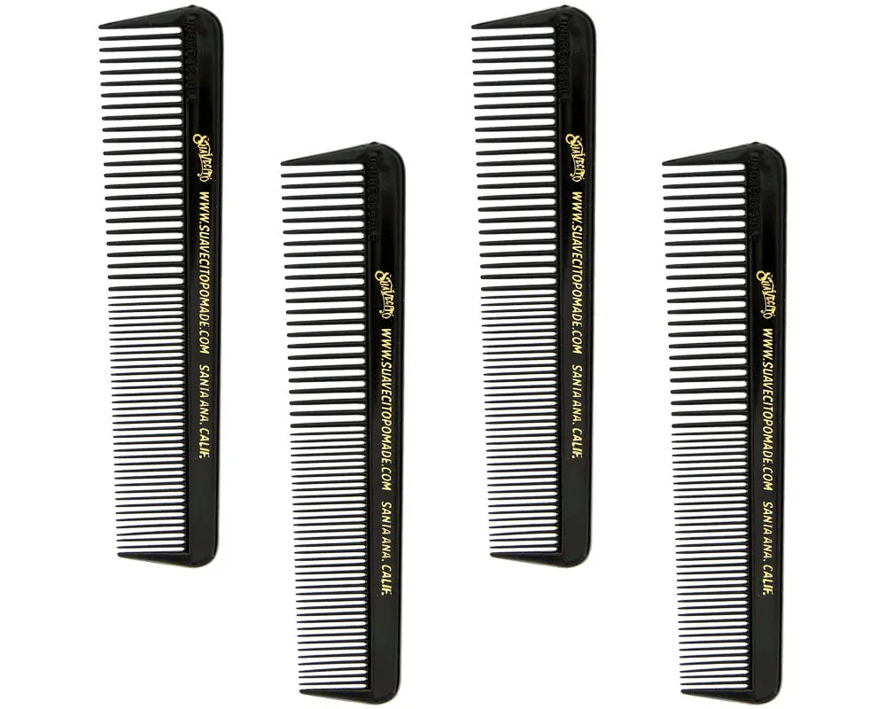5. SUAVECITO Unbreakable Comb Pack - Black, Unisex Hair Styling Tool Set with 4 Combs for Men & Women, Pomade Accessories