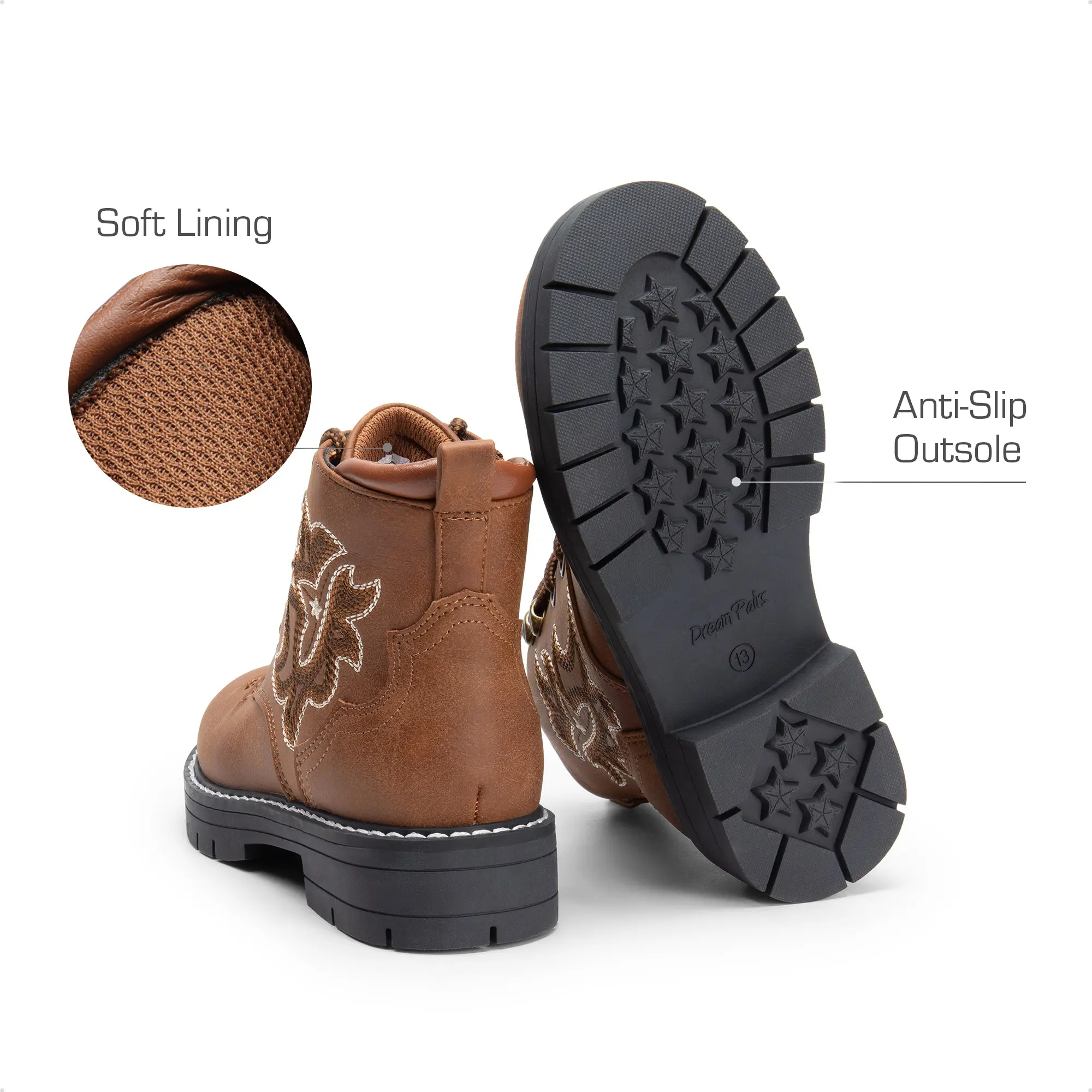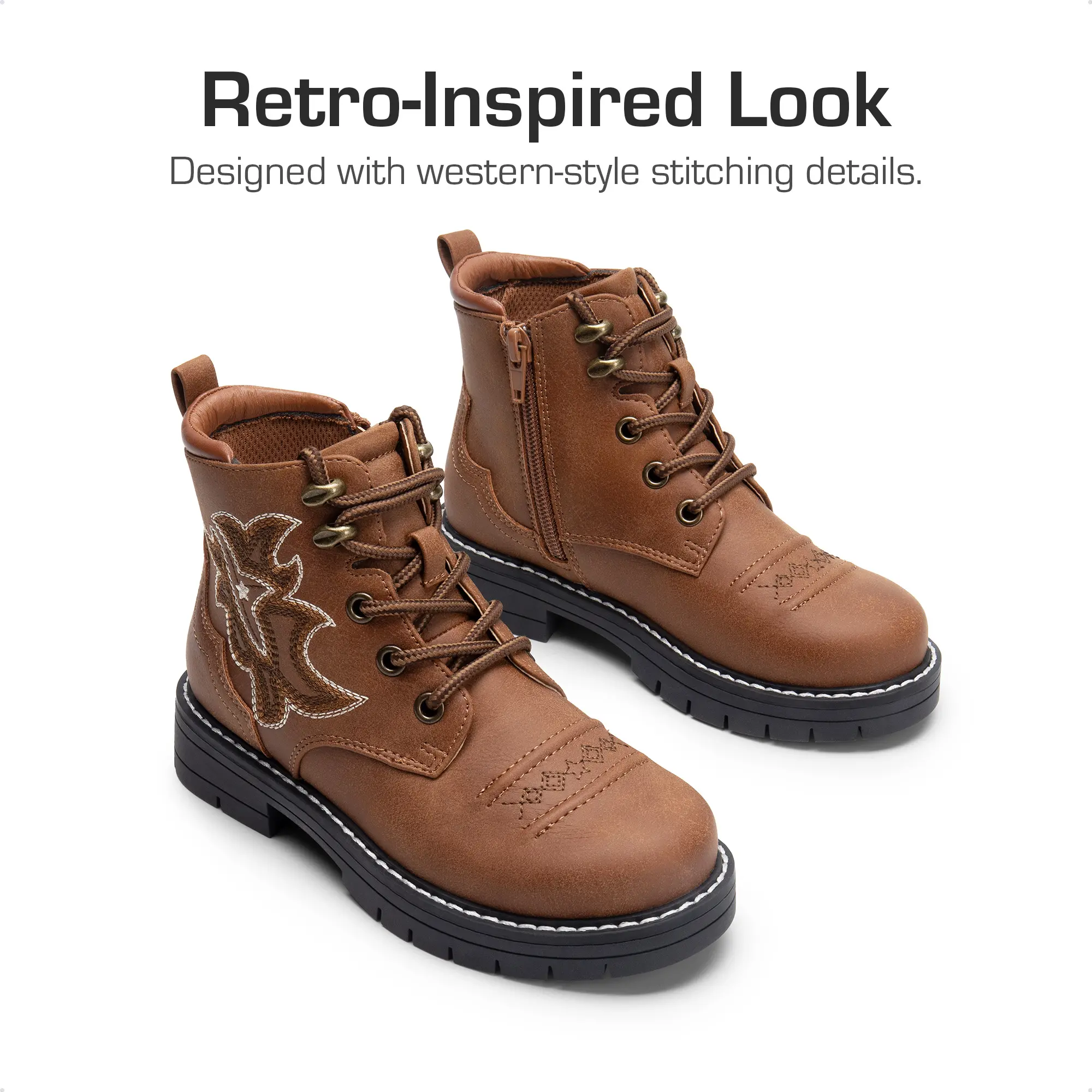 ·Western-Inspired Style: These children's boot draws inspiration from classic Western cowboy boots, blending retro distressed leather texture with embroidered patterns. These kids' boots instantly make your child the most eye-catching trendsetter.