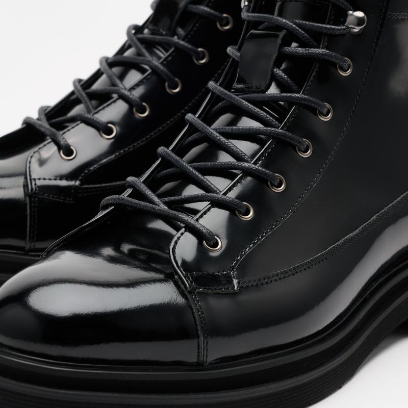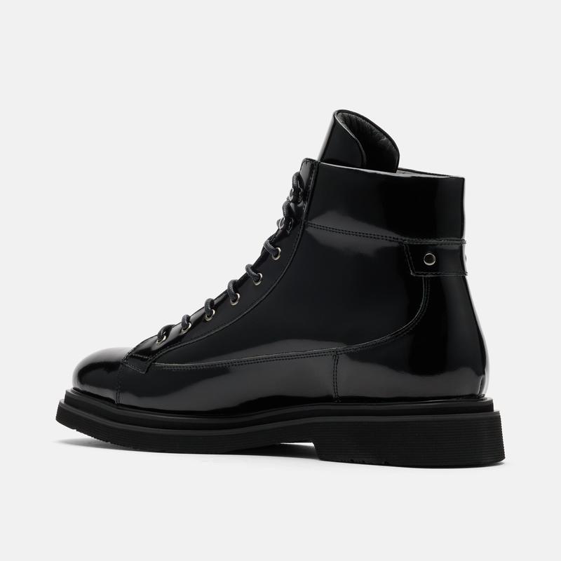 5. Aiden Black Patent Leather Combat Boots