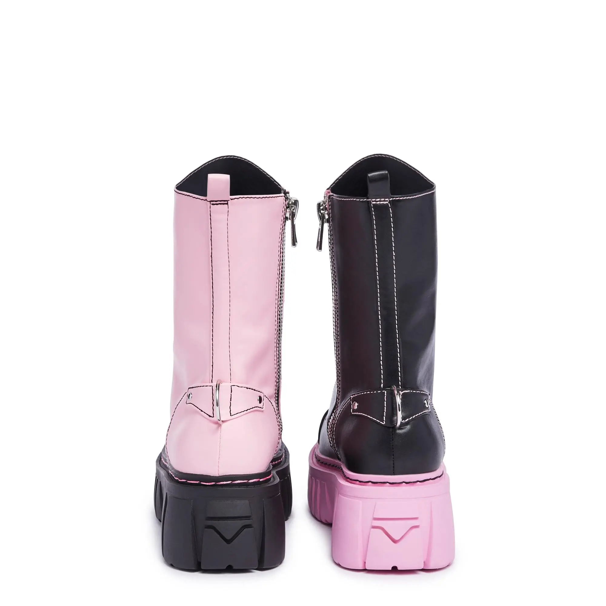 Devil Games Mismatched Combat Boots - Black/Pink