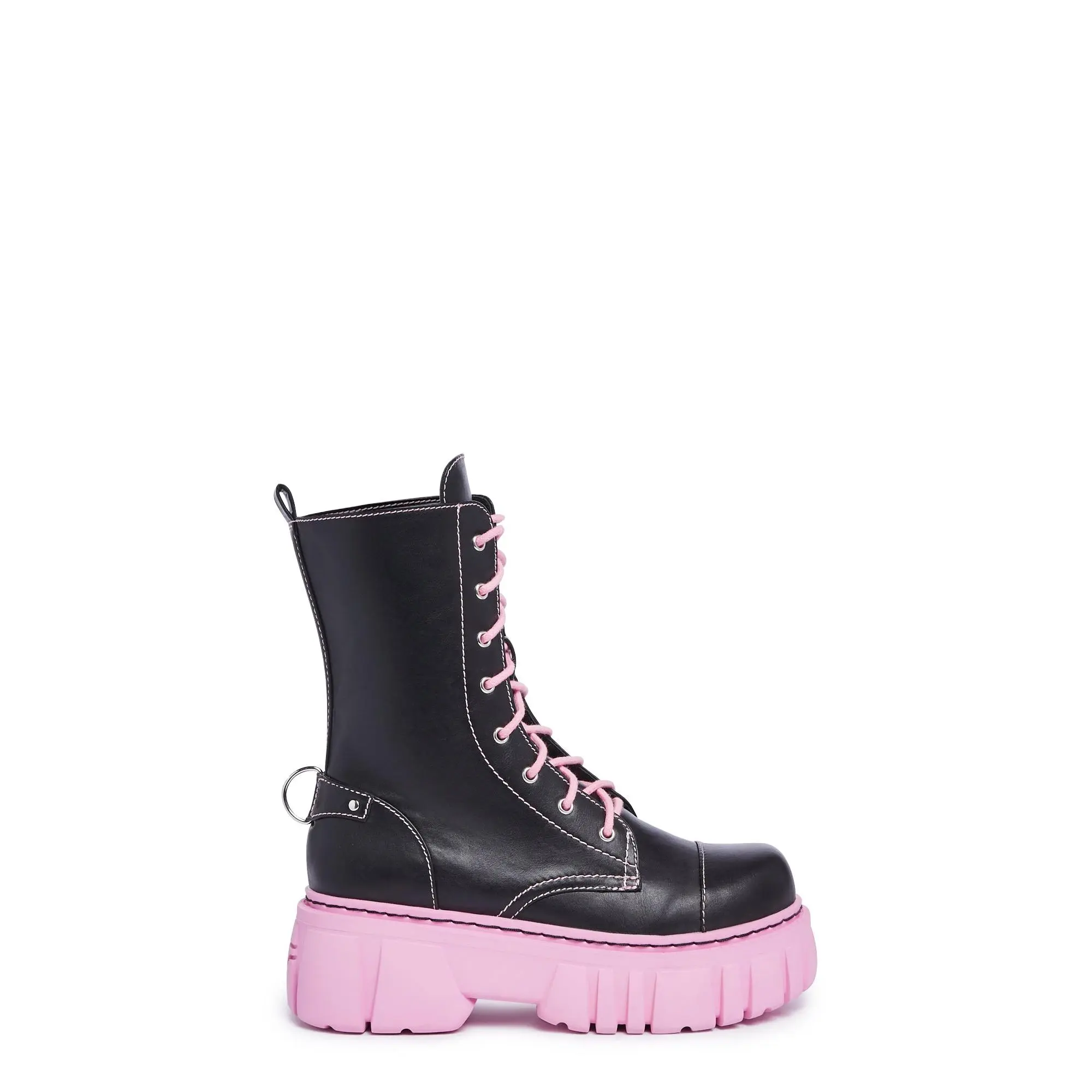 Devil Games Mismatched Combat Boots - Black/ Pink #boots #womenboots #fyp #fashionshoes #trendystyle