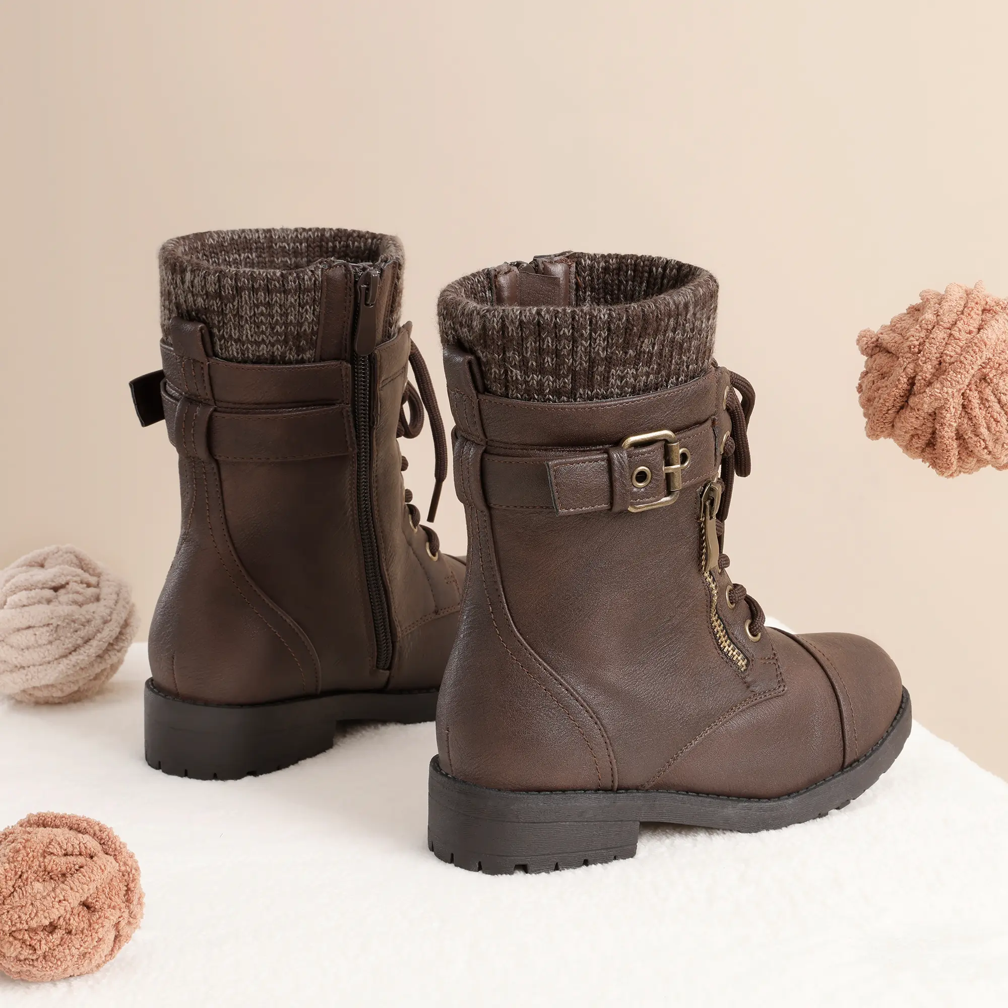 DREAM PAIRS KIDS Girl's Mid Calf Combat Boots #KidsCombatBoots #GirlsBoots #MidCalfBoots #KidsFashion #TikTokShopFinds
